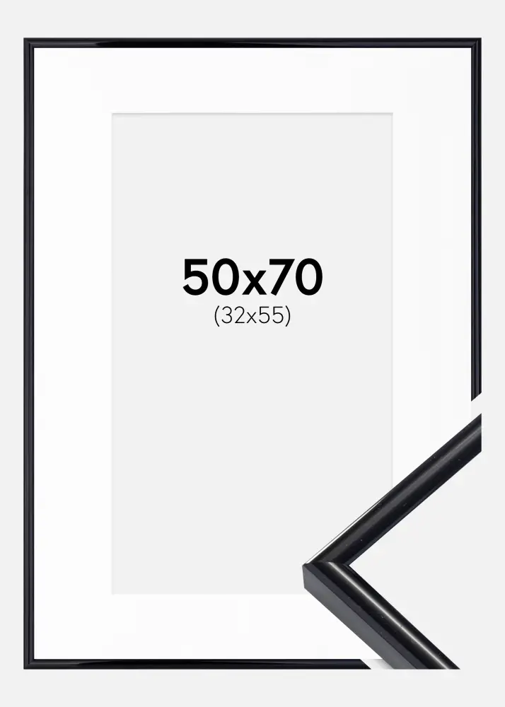Cadre Victoria Noir 50x70 cm - Passe-partout Blanc 33x56 cm