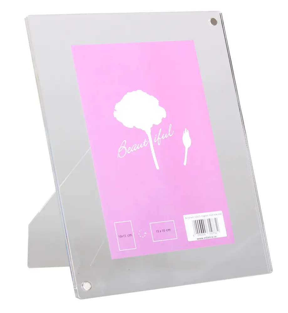Cadre en acrylique composé de 2 plaques épaisses en acrylique maintenues ensemble par des aimants. Le cadre a une dimension extérieure de 15x20 cm, ce qui signifie qu'il peut être utilisé pour n'importe quelle taille de 15x20cm ou moins. La taille du papier barrière, comme le montre l'image, est de 10x15 cm.