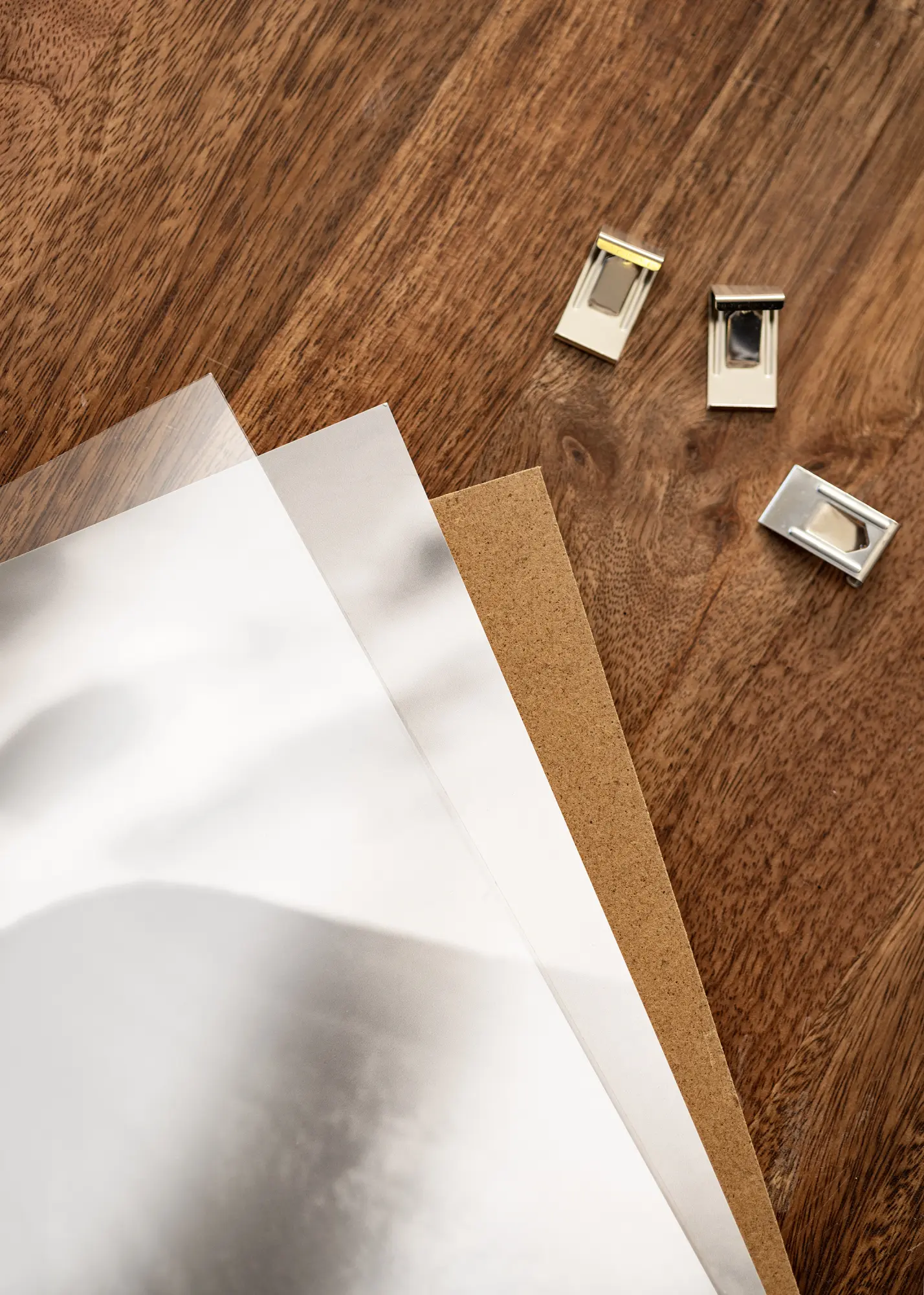 Ce type de cadre, également connu sous le nom de cadre sous verre, est idéal pour une intégration discrète dans tout décor, car il n'impose aucune limite visuelle entre votre œuvre et son environnement. Il est donc extrêmement populaire dans les galeries d'art et les intérieurs minimalistes où l'accent est mis sur l'art plutôt que sur le cadre lui-même. Avec ce cadre sous verre, vos photos sont protégées tout en restant complètement visibles sous tous les angles, offrant une expérience visuelle immersive.