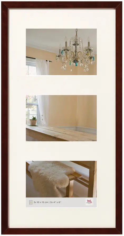 Pour des images de format 10x15 cm / Dimensions extérieures du cadre : 21,5x44 cm