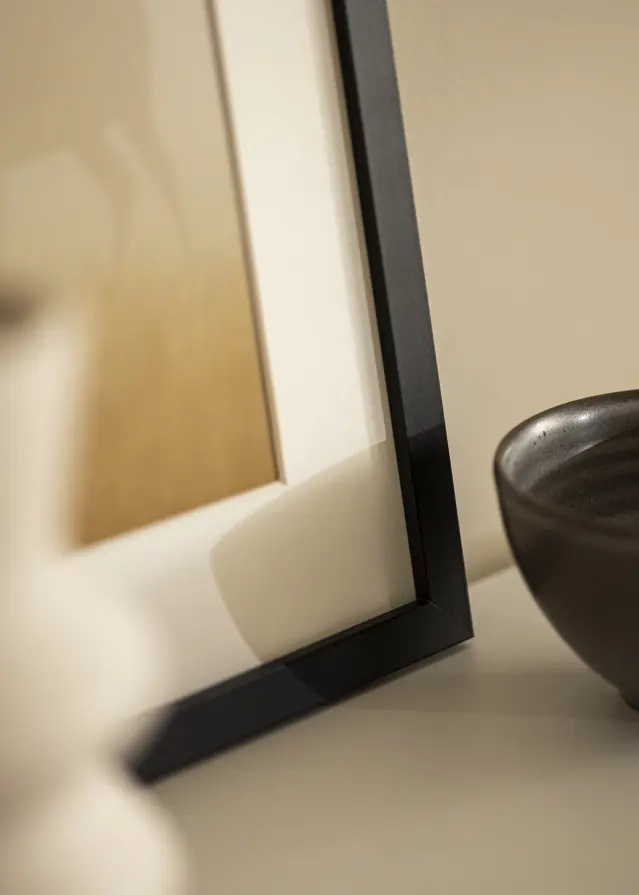 Certains de nos cadres photo ont ce qu’on appelle le verre flotté, qui est un verre plus lisse que le verre ordinaire, avec de meilleures propriétés de lumière et également une protection à 45 % contre les rayons UV nocifs. Ensuite, nous avons le plexiglas, qui est une forme de plastique acrylique transparent qui imite le verre. Enfin, nous proposons des cadres photo avec verre antireflet. Ce verre a été traité pour réduire les reflets, qui peuvent faire disparaître votre motif lorsqu’il est éclairé.