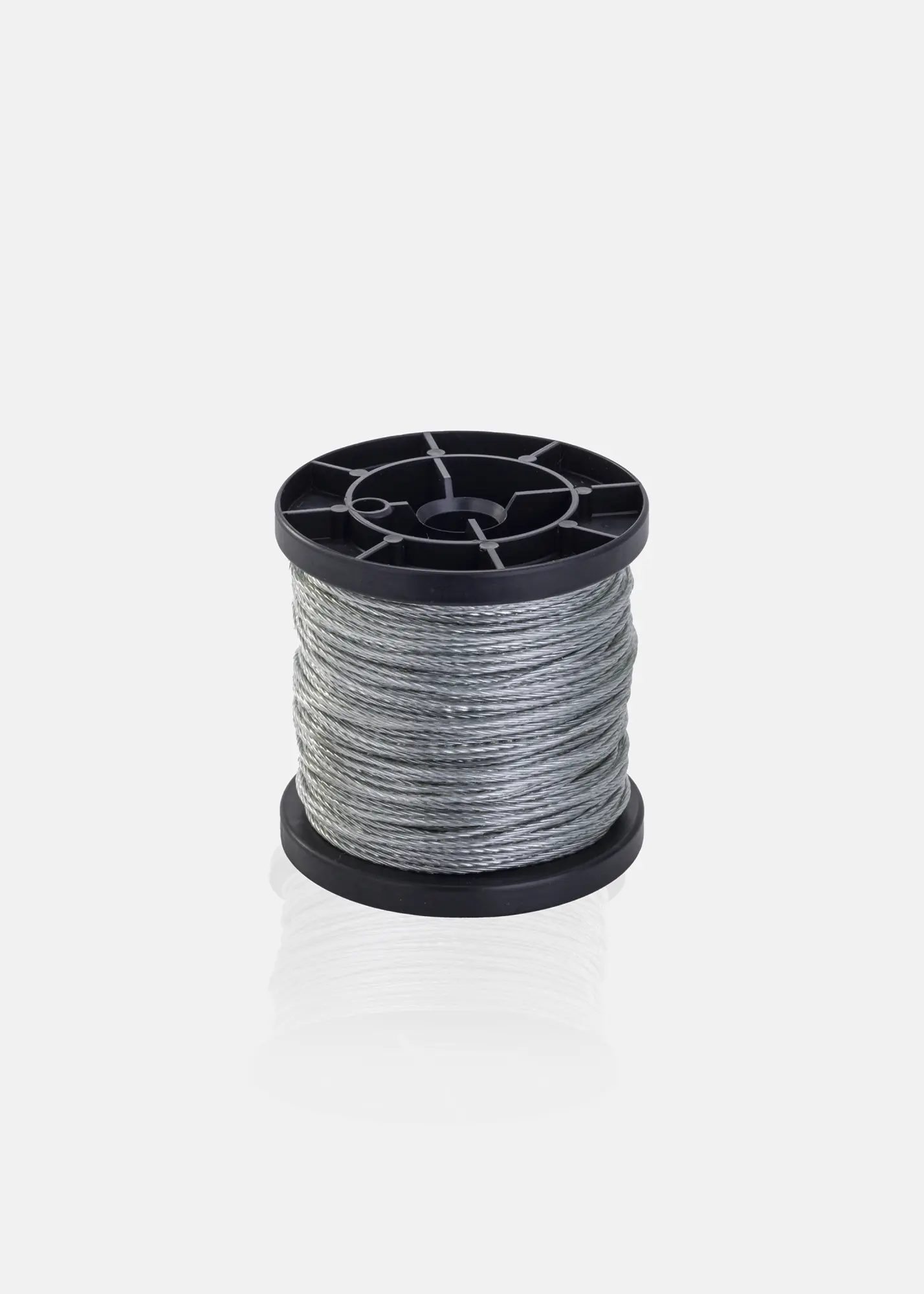 Corde en acier plastifiée sur un rouleau pratique de 50 mètres. Parfait lorsque vous souhaitez mettre de l'ordre dans tous vos tableaux. Son épaisseur est au total de 2,5 mm de diamètre : la pièce en acier elle-même est de 1 mm et le revêtement PVC est de 1,5 mm.
