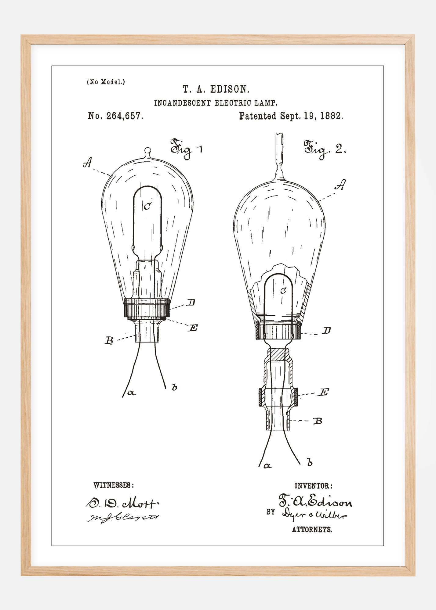 Dessin de brevet - Ampoule à incandescence A - Blanc Poster (40x50 cm)