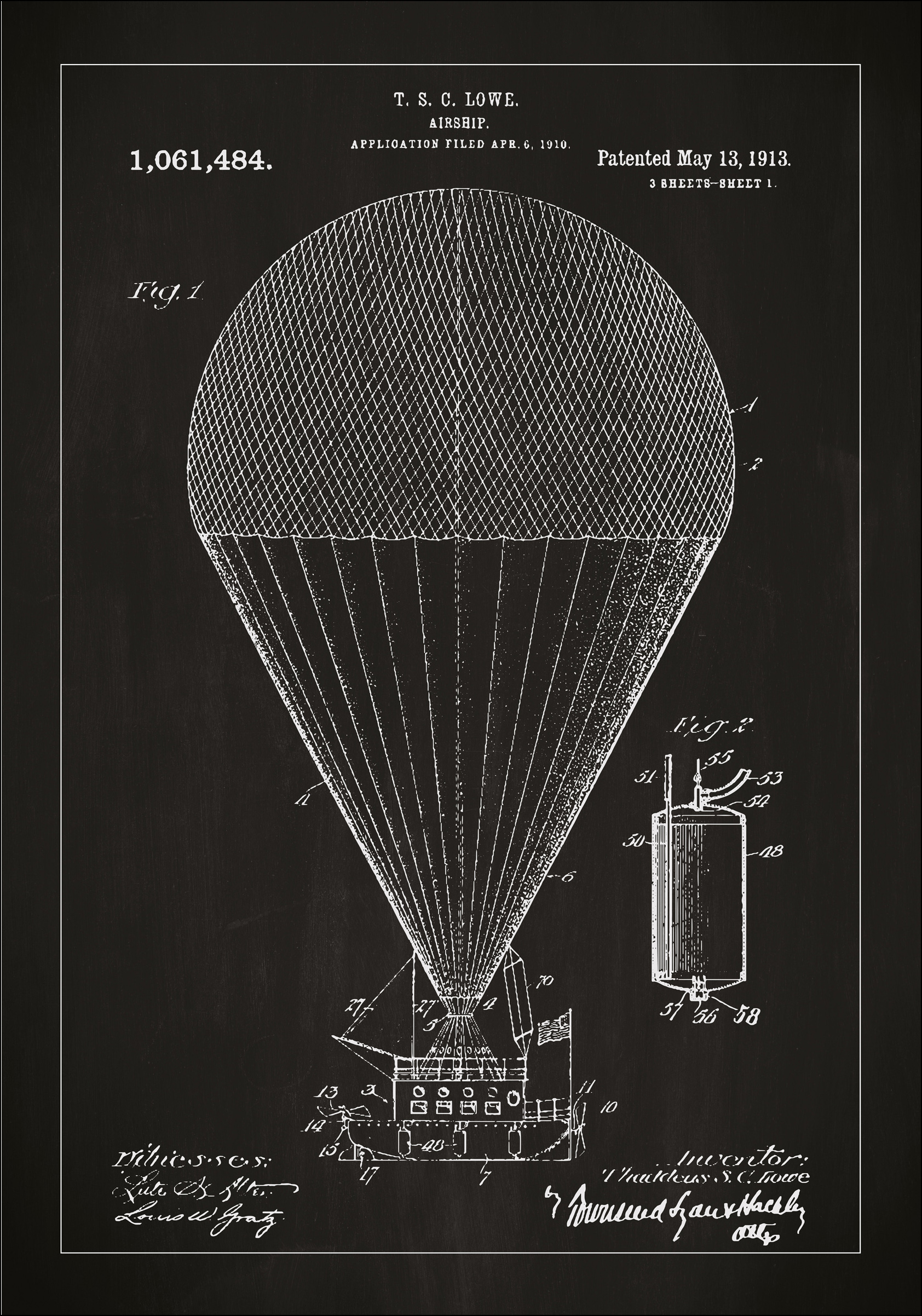 Dessin de brevet - Ballon dirigeable - Noir Poster