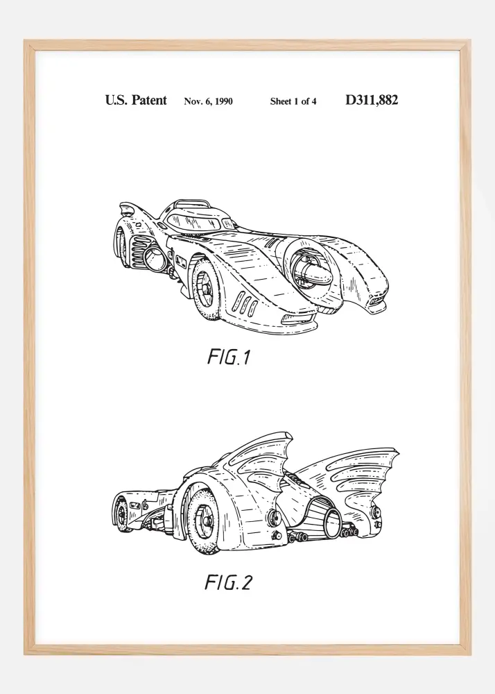 Dessin de brevet - Batman - Batmobile 1990 I Poster (21x29,7 cm (A4))