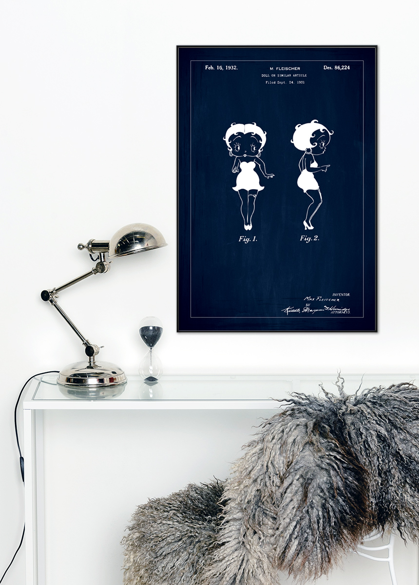 Dessin de brevet - Betty Boop - Bleu Poster (21x29,7 cm (A4))