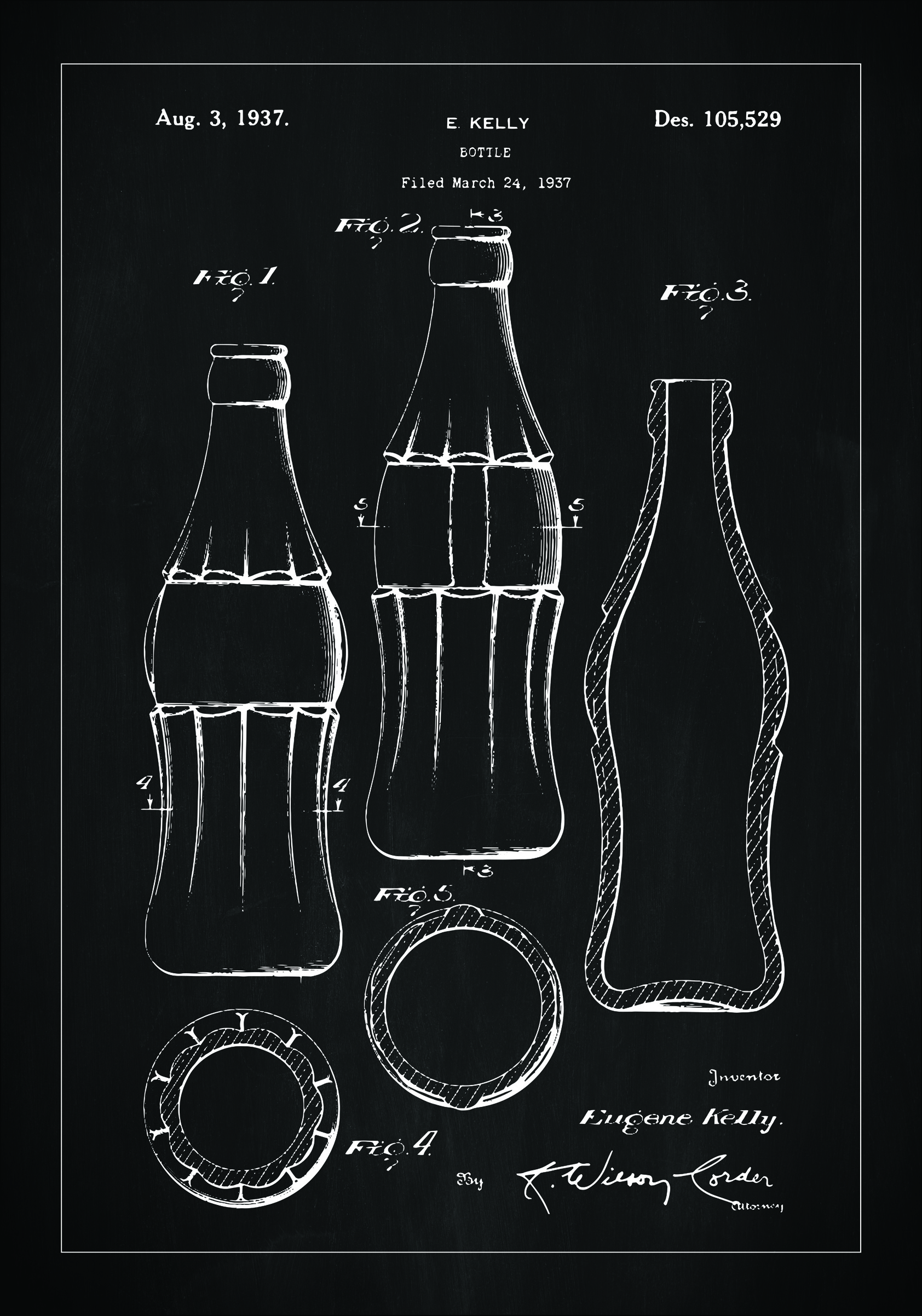 Dessin de brevet - Bouteille Coca Cola - Noir Poster (21x29,7 cm (A4))