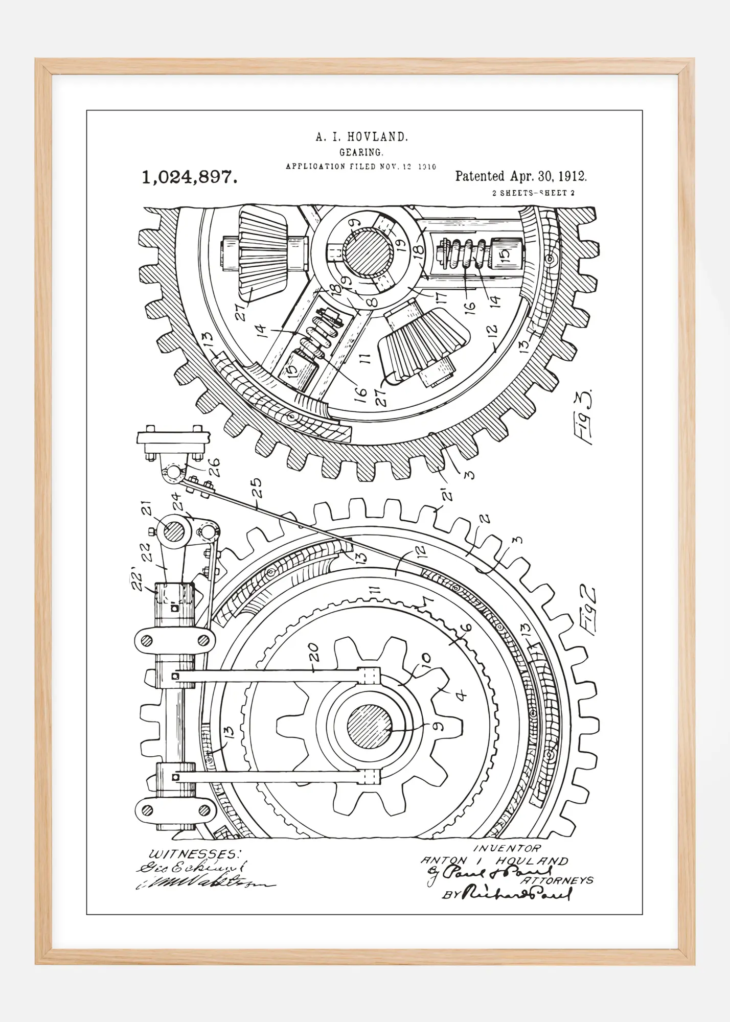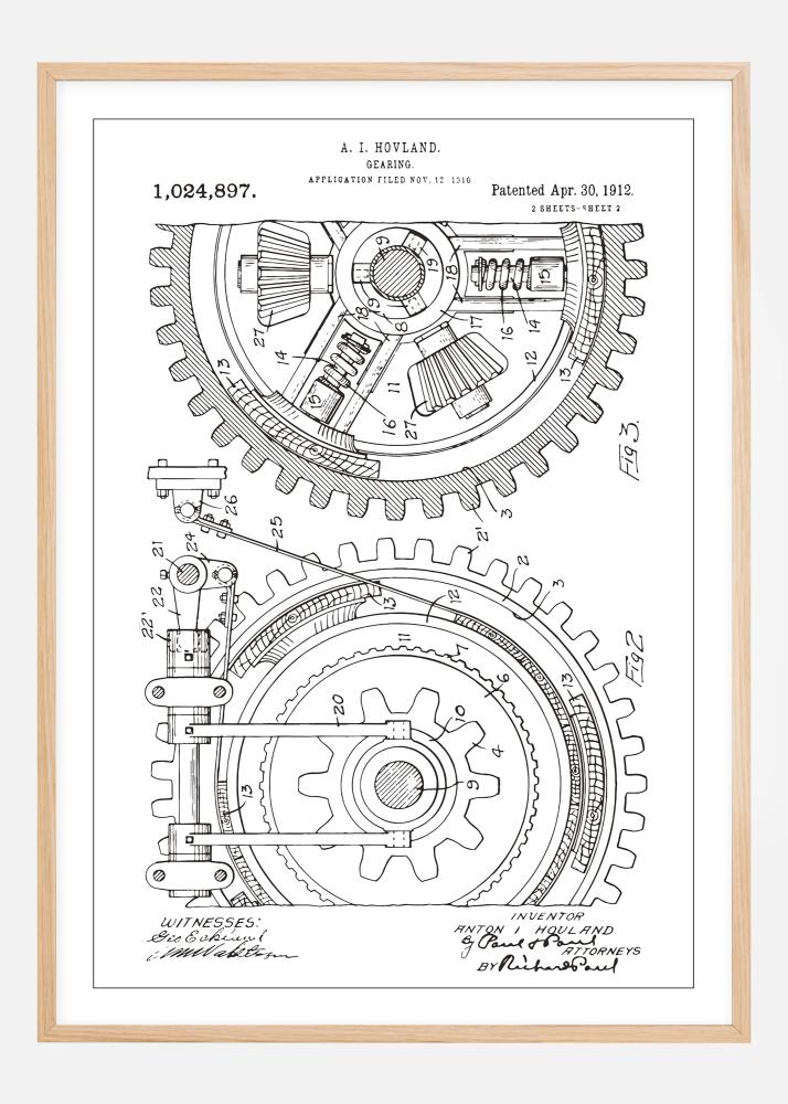 Dessin de brevet - Engrenage - Blanc Poster (21x29,7 cm (A4))