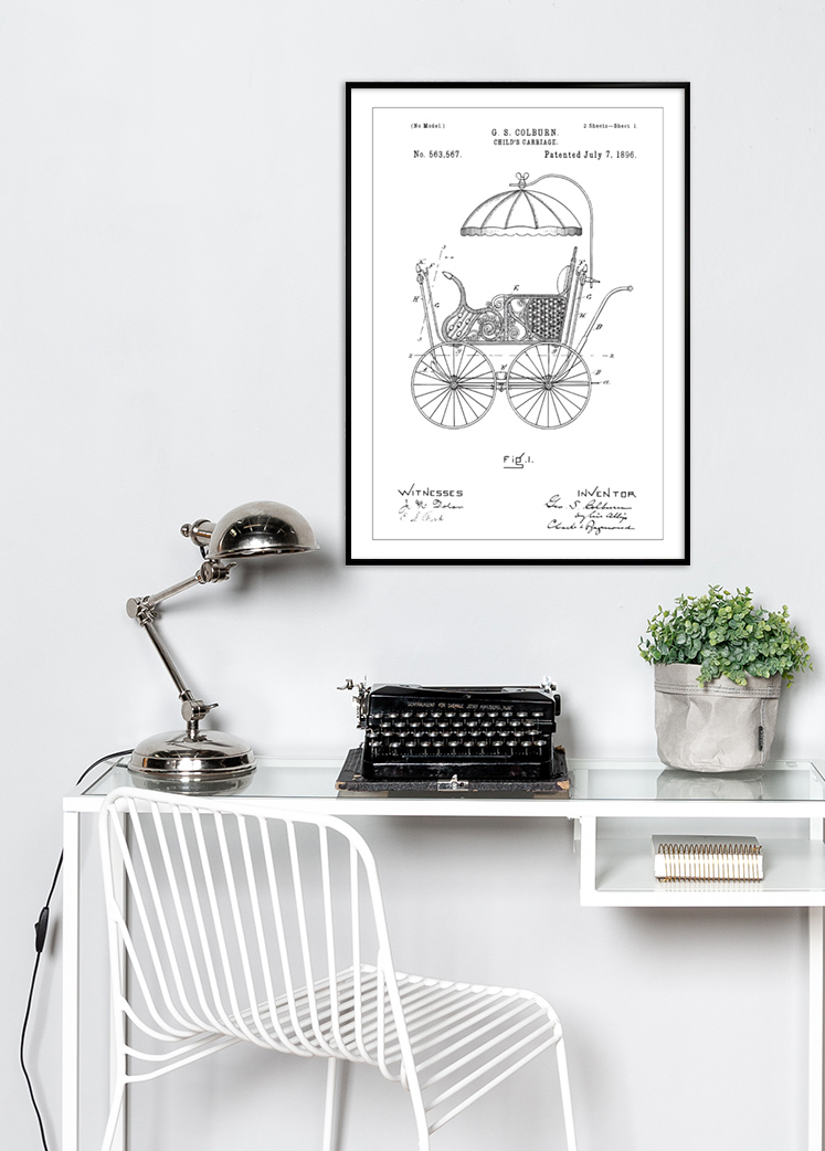 Le dessin de brevet est non seulement un morceau intéressant de l'histoire, mais aussi un atout esthétique pour tous ceux qui apprécient la décoration vintage et rétro. Cette affiche de brevet est un cadeau idéal pour de nouveaux parents, des collectionneurs de poussettes ou comme un détail d'intérieur unique dans une chambre d'enfant. Elle sert de sujet de conversation et de merveilleux rappel de combien nous avons progressé dans le monde des soins aux enfants et du design.