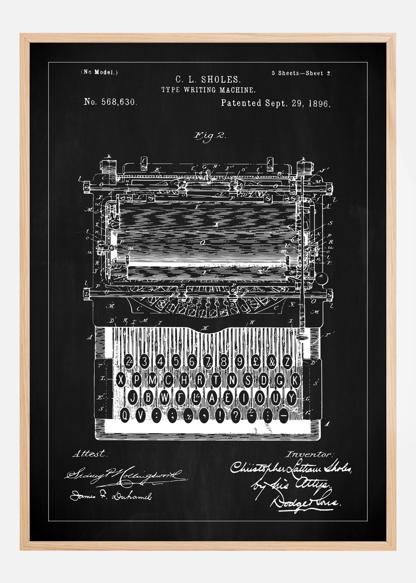 Dessin de brevet - Machine à écrire - Noir Poster (50x70 cm)
