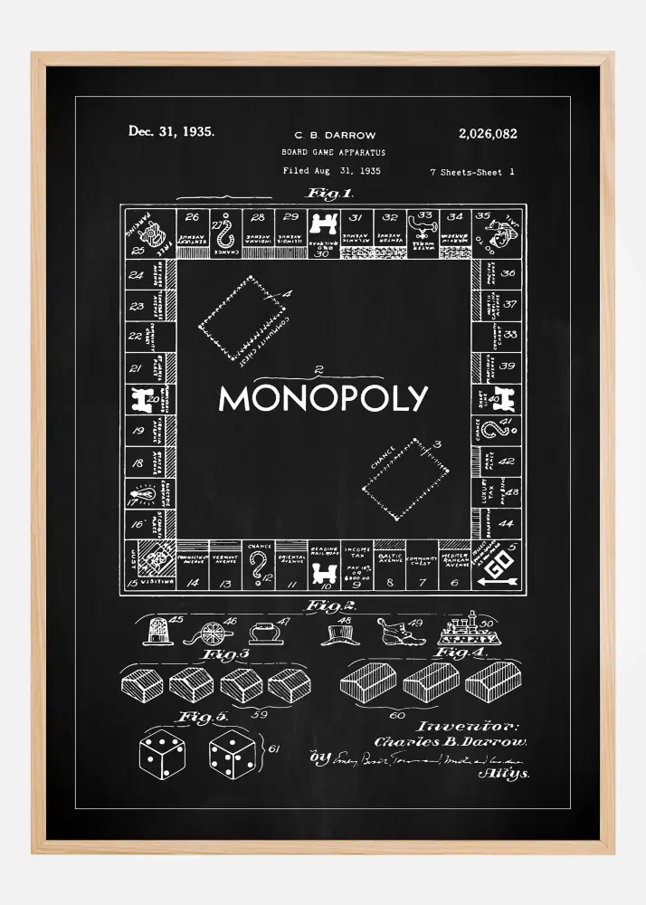 Dessin de brevet - Monopoly I - Noir Poster (21x29,7 cm (A4))