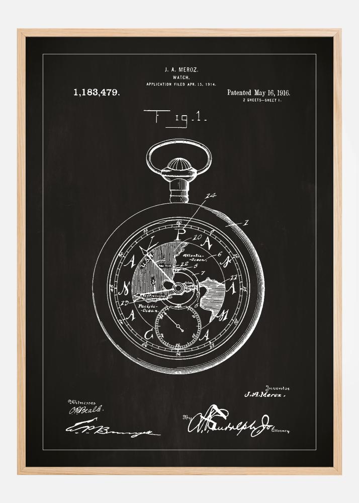 Dessin de brevet - Montre de poche - Noir Poster (30x40 cm)
