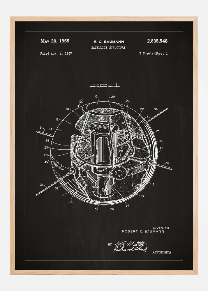 Avec des lignes blanches nettes qui se distinguent sur le fond noir profond, cette affiche de brevet offre un aperçu fascinant de la technologie historique et est une pièce décorative impressionnante pour quiconque a une passion pour l'espace, la science et l'innovation historique. C'est un rappel inspirant de la quête humaine pour explorer au-delà de notre propre planète et serait un détail spectaculaire dans n'importe quelle pièce.