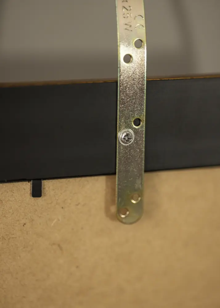 Normalement, vous attachez l'éclairage de tableau à l'arrière du cadre, mais l'inconvénient est que cela nécessite un cadre en bois (certains cadres en composite fonctionnent également bien) avec un profil large pour pouvoir visser dans le cadre. Avec notre support mural, vous n'avez pas à y penser et pouvez installer simplement votre éclairage de tableau directement sur le mur derrière le tableau.