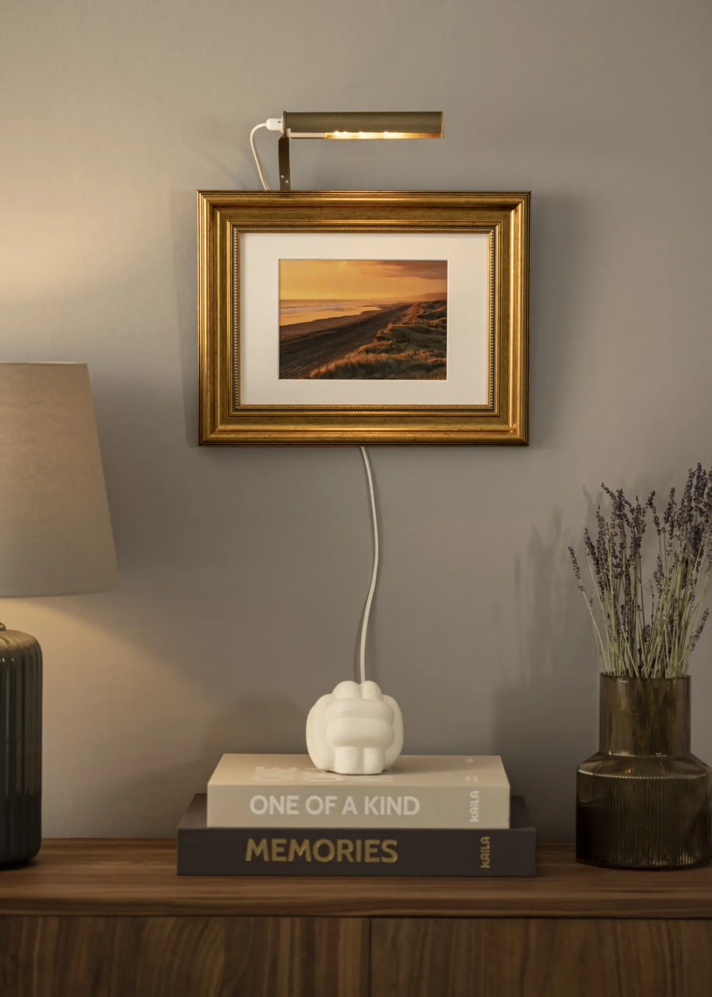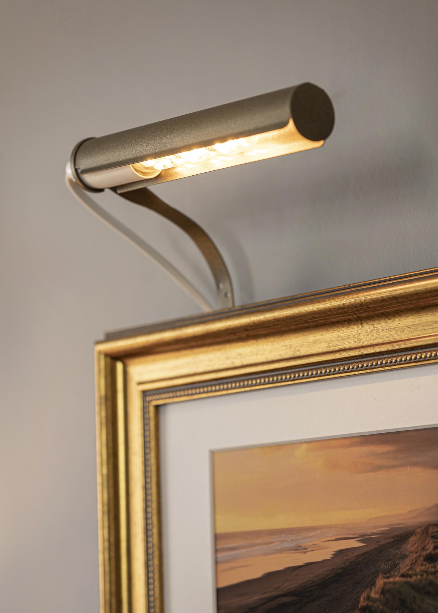 Pour quels tableaux convient l’éclairage ? Normalement, vous attachez l'éclairage de tableau à l'arrière du cadre, mais l'inconvénient est que cela nécessite un cadre en bois (certains cadres en composite fonctionnent également bien) avec un profil large pour pouvoir visser dans le cadre. Avec notre support mural, vous n'avez pas à y penser et pouvez installer simplement votre éclairage de tableau directement sur le mur derrière le tableau.