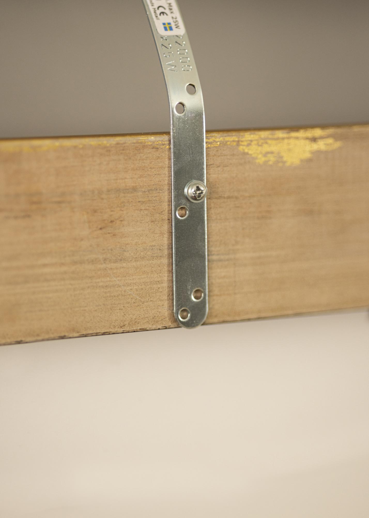 Normalement, vous attachez l'éclairage de tableau à l'arrière du cadre, mais l'inconvénient est que cela nécessite un cadre en bois (certains cadres en composite fonctionnent également bien) avec un profil large pour pouvoir visser dans le cadre. Avec notre support mural, vous n'avez pas à y penser et pouvez installer simplement votre éclairage de tableau directement sur le mur derrière le tableau.
