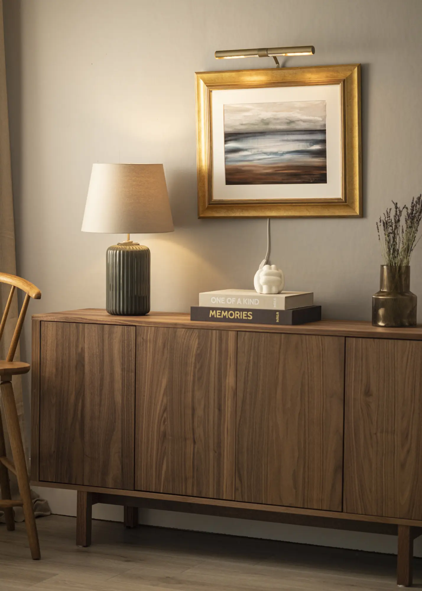 L'éclairage pour tableau est doté d'une élégante nuance de couleur et d'un cordon neutre en blanc.