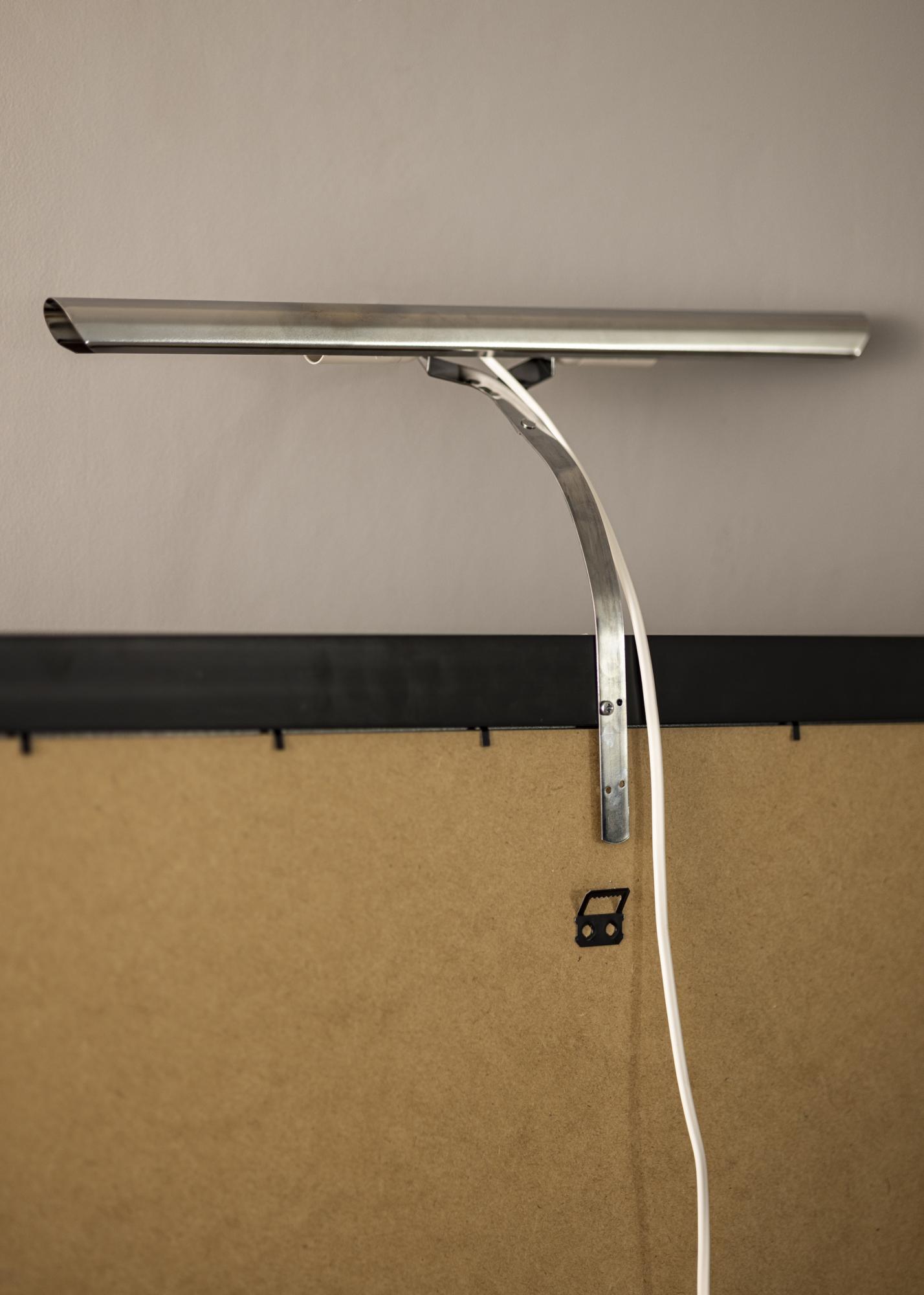 Normalement, vous attachez l'éclairage de tableau à l'arrière du cadre, mais l'inconvénient est que cela nécessite un cadre en bois (certains cadres en composite fonctionnent également bien) avec un profil large pour pouvoir visser dans le cadre. Avec notre support mural, vous n'avez pas à y penser et pouvez installer simplement votre éclairage de tableau directement sur le mur derrière le tableau.