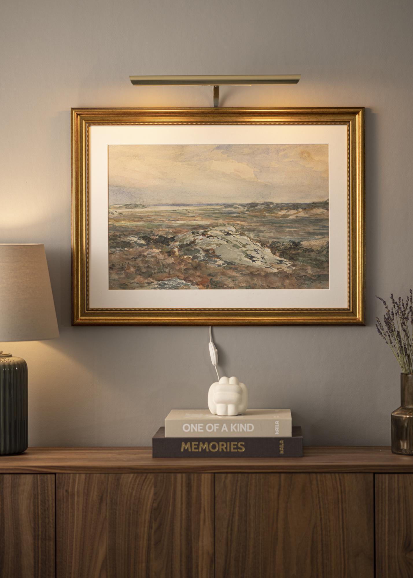 Pour quels tableaux convient l’éclairage ? Normalement, vous attachez l'éclairage de tableau à l'arrière du cadre, mais l'inconvénient est que cela nécessite un cadre en bois (certains cadres en composite fonctionnent également bien) avec un profil large pour pouvoir visser dans le cadre. Avec notre support mural, vous n'avez pas à y penser et pouvez installer simplement votre éclairage de tableau directement sur le mur derrière le tableau.