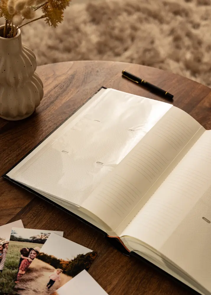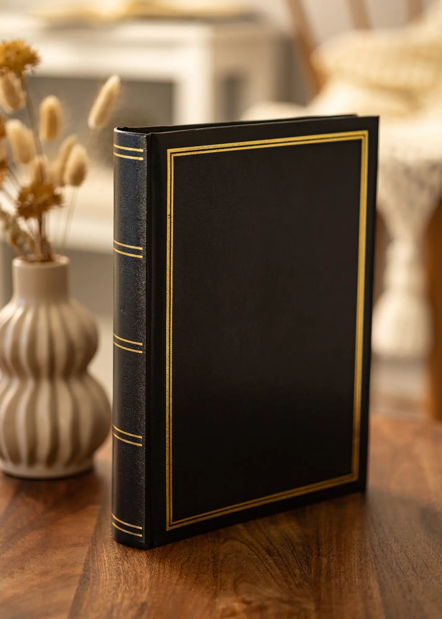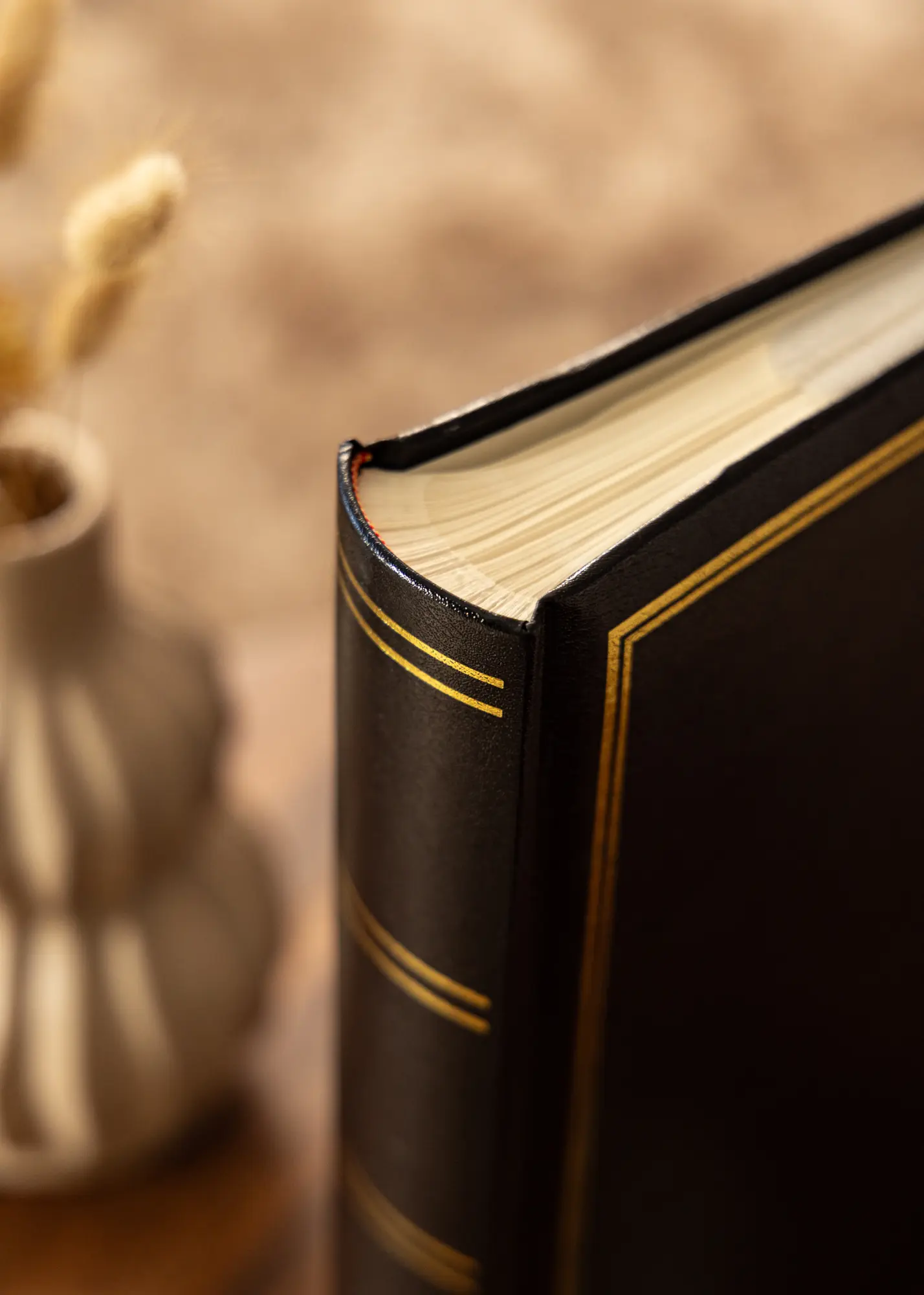 Exclusive Line Super Noir est un album photo relié avec des reliures extra solides qui offrent une sensation de haute qualité. L'album a des pochettes photo pour 300 images au format 10x15 cm et une pochette pour négatifs. Les feuilles d'album sans acide sont blanches et comportent des champs d'écriture près de chaque image.