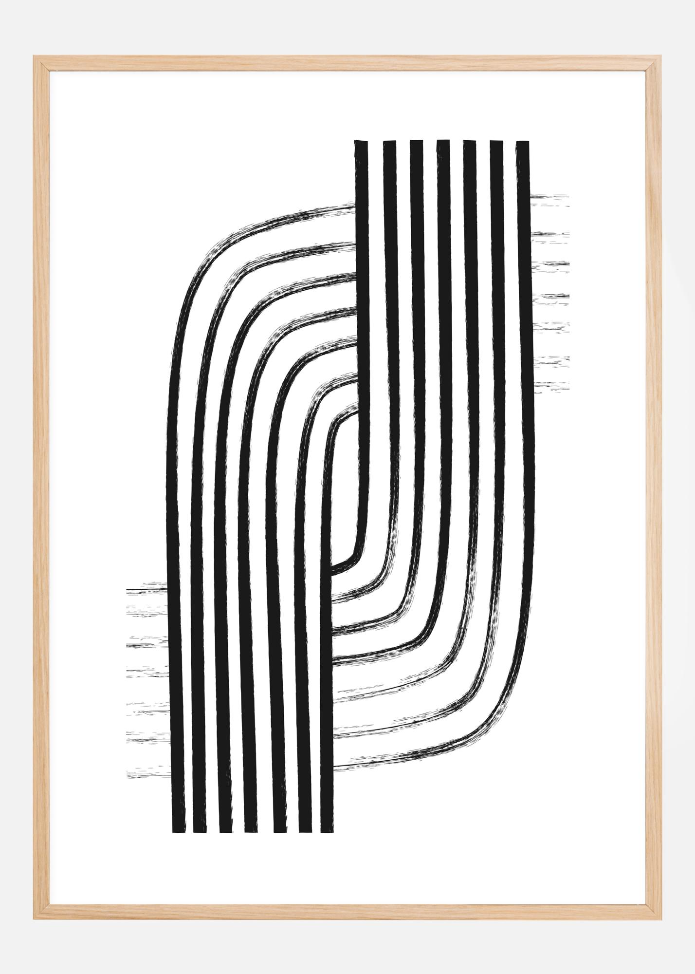 Une simple affiche de lignes noires formant un motif. L'image se compose de sept lignes noires qui montent tout droit, puis s'incurvent et s'estompent. Une deuxième série de lignes reflète la première, mais dans la direction opposée. Transformez votre maison en galerie avec cette œuvre expérimentale.