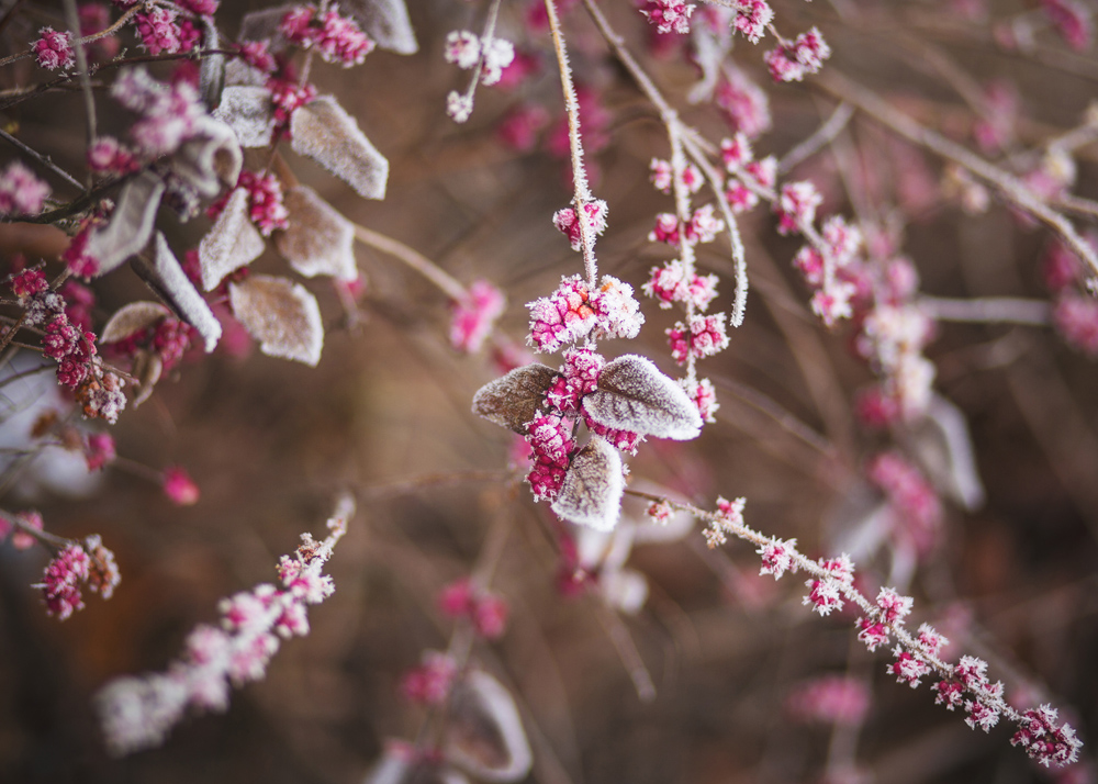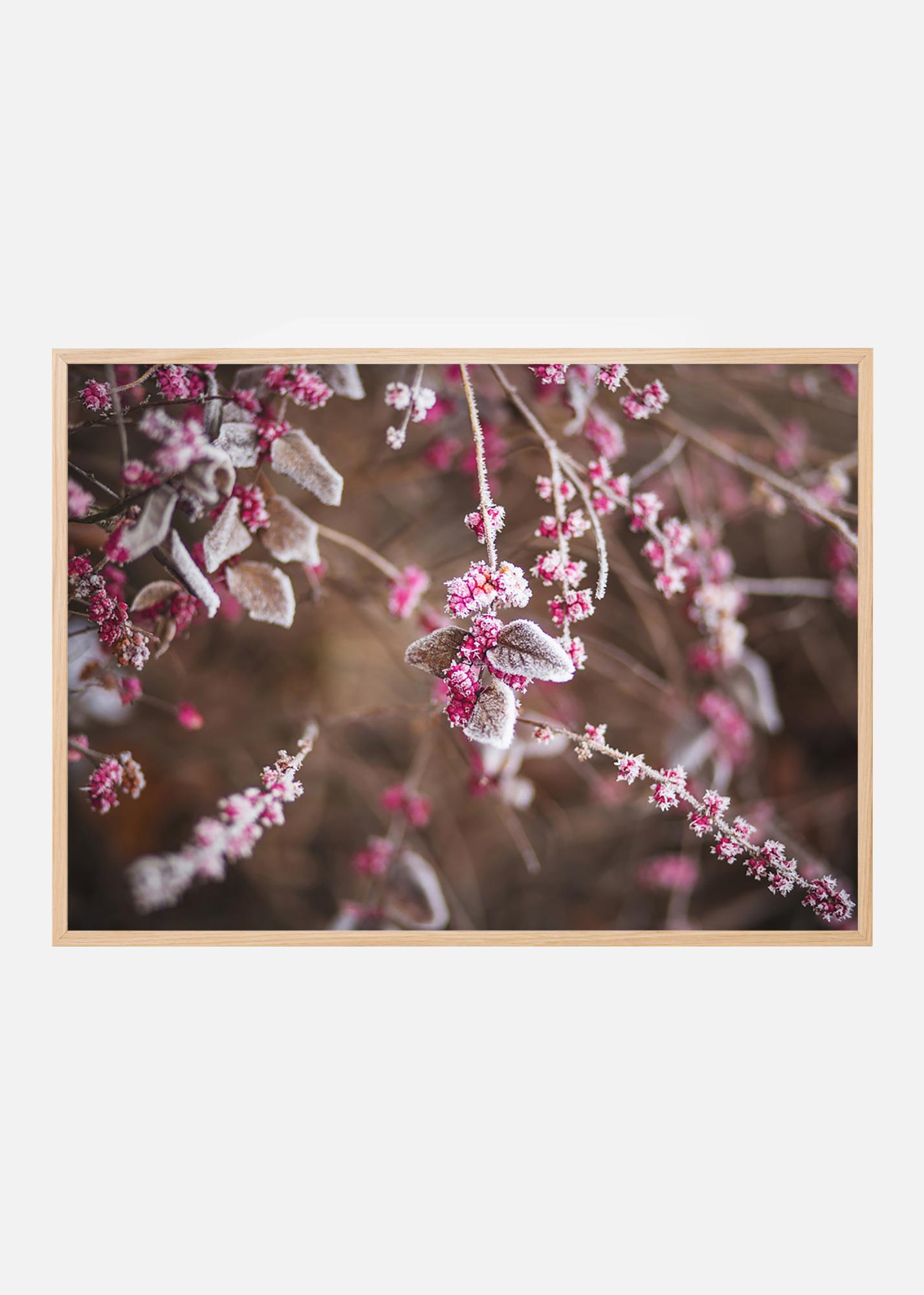 Art photographique en gros plan sur des baies givrées et rosées avec une faible profondeur de champ. L'impression, avec les baies en rose et l'arrière-plan en tons de chocolat, donne une sensation chaleureuse et accueillante. Dans un format plus grand avec un cadre élégant, le tableau devient un point de mire dans le salon ou placez une version plus petite dans le collage de tableaux avec d'autres posters dans les mêmes nuances de couleur.