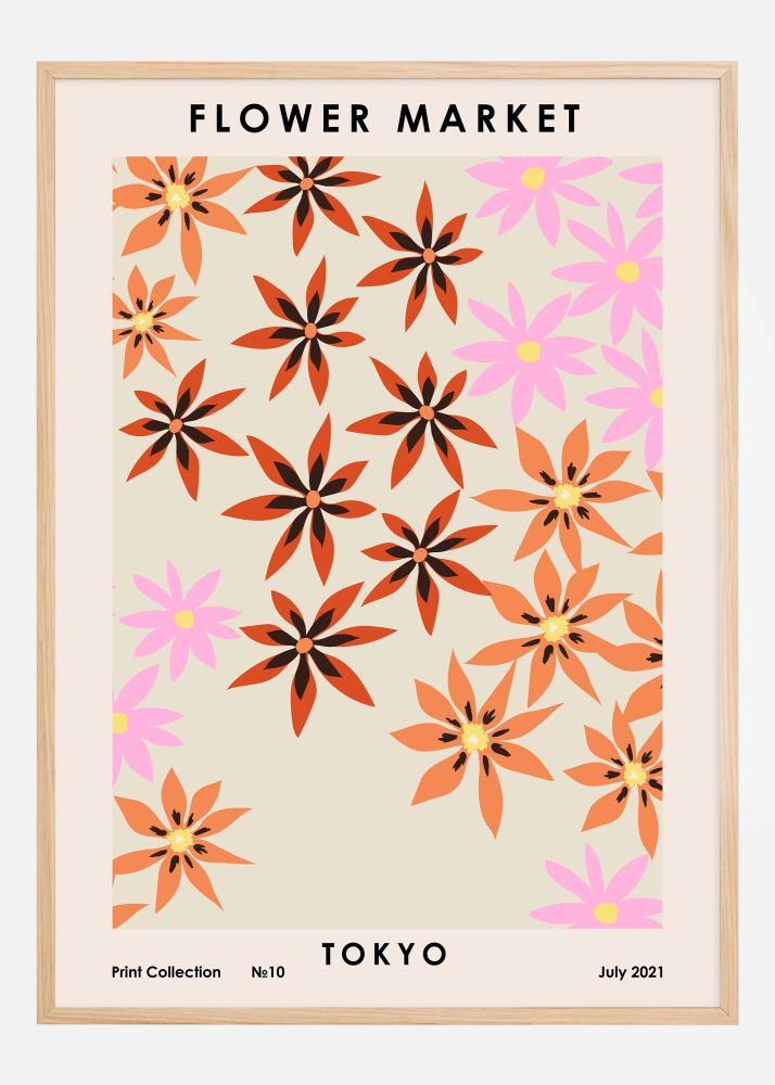 Ce poster vivant capture l'essence d'un marché aux fleurs à Tokyo avec son motif débordant de fleurs en corail, noir et rose sur un fond beige clair. Cet affiche donne une sensation ludique et contemporaine qui embellit chaque pièce avec son charme esthétique. Chaque fleur est simple mais artistiquement représentée, avec des nuances qui donnent une sensation de profondeur et de dimension au design.