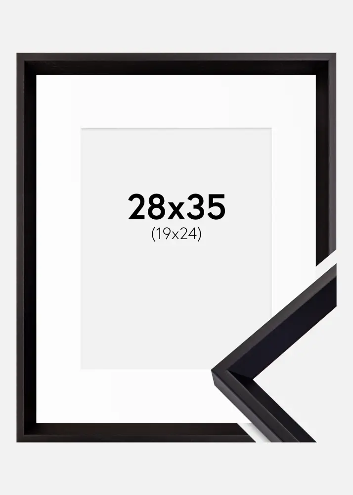 Forfait comprenant le cadre photo et le passe-partout blanc assorti. Sur la photo du produit, vous pouvez voir les dimensions du cadre (indiquées en gras) et les dimensions intérieures du passe-partout (indiquées entre parenthèses). Notez que les dimensions intérieures du passe-partout se doivent d'être toujours 1 cm inférieures par rapport à la taille de l'image que vous souhaitez encadrer.