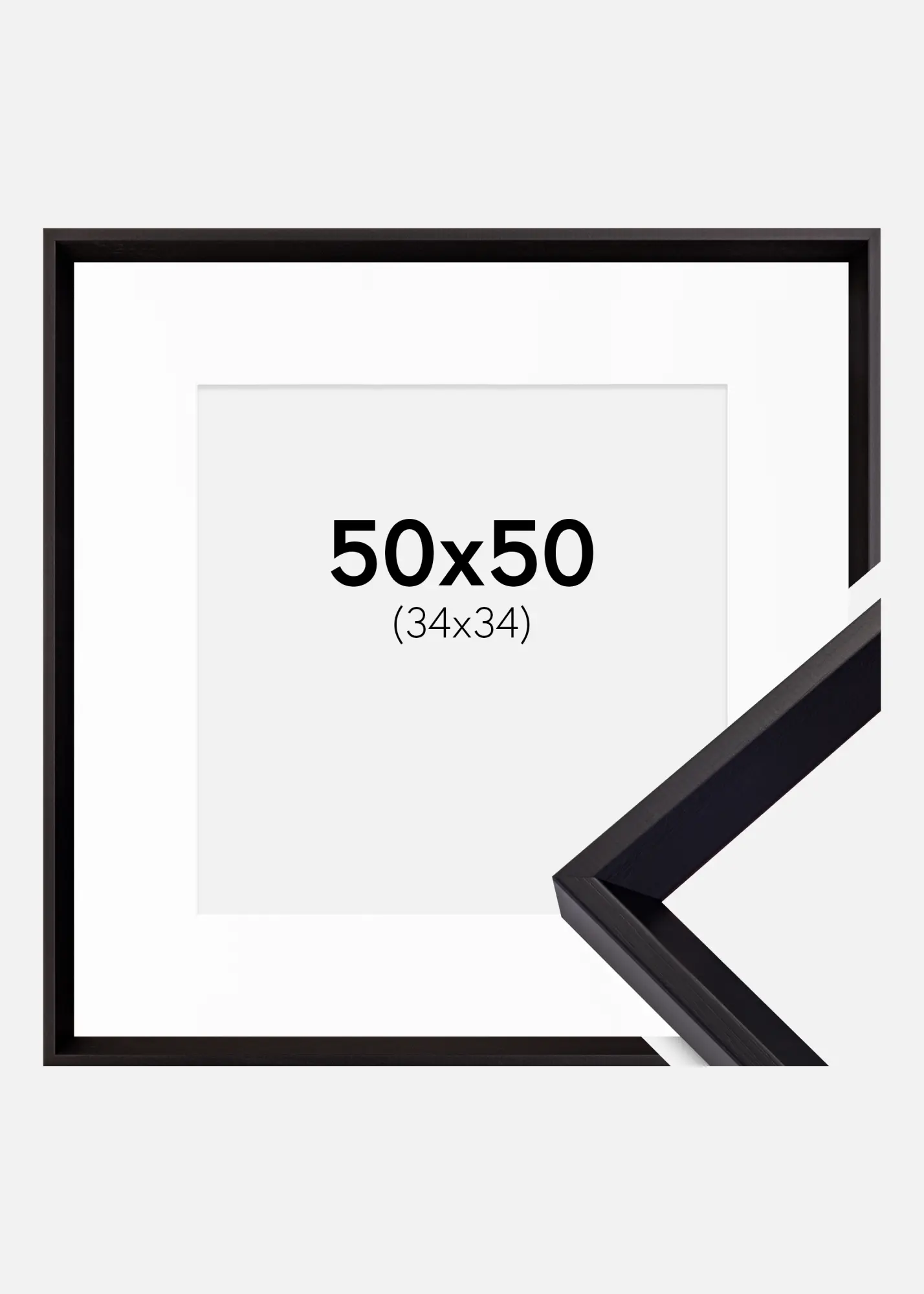 Forfait comprenant le cadre photo et le passe-partout blanc assorti. Sur la photo du produit, vous pouvez voir les dimensions du cadre (indiquées en gras) et les dimensions intérieures du passe-partout (indiquées entre parenthèses). Notez que les dimensions intérieures du passe-partout se doivent d'être toujours 1 cm inférieures par rapport à la taille de l'image que vous souhaitez encadrer.