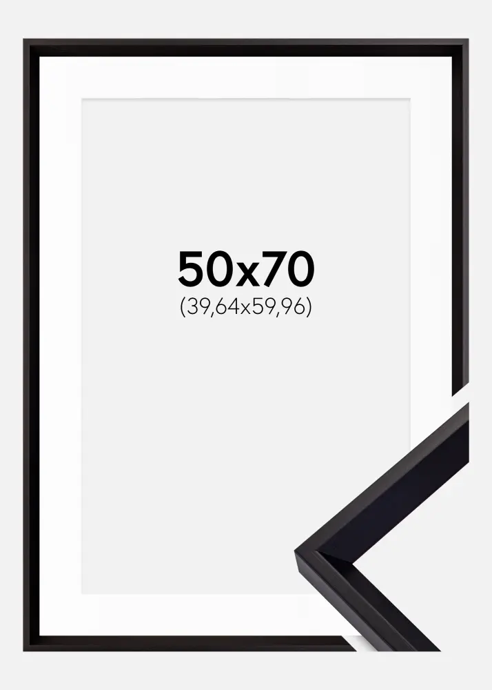 Forfait comprenant le cadre photo et le passe-partout blanc assorti. Sur la photo du produit, vous pouvez voir les dimensions du cadre (indiquées en gras) et les dimensions intérieures du passe-partout (indiquées entre parenthèses). Notez que les dimensions intérieures du passe-partout se doivent d'être toujours 1 cm inférieures par rapport à la taille de l'image que vous souhaitez encadrer.