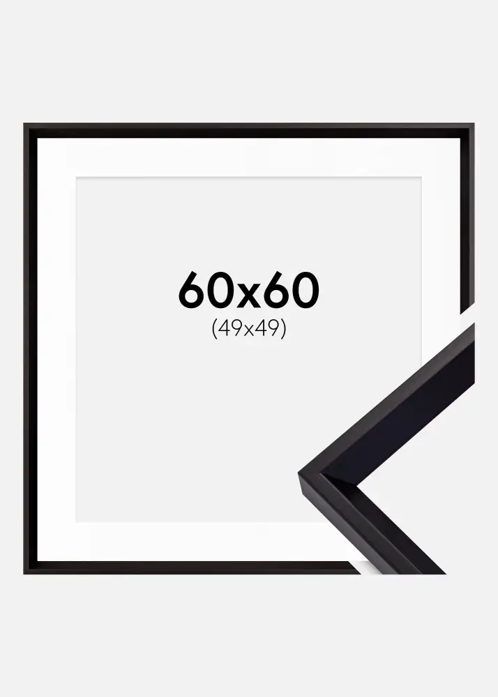 Forfait comprenant le cadre photo et le passe-partout blanc assorti. Sur la photo du produit, vous pouvez voir les dimensions du cadre (indiquées en gras) et les dimensions intérieures du passe-partout (indiquées entre parenthèses). Notez que les dimensions intérieures du passe-partout se doivent d'être toujours 1 cm inférieures par rapport à la taille de l'image que vous souhaitez encadrer.