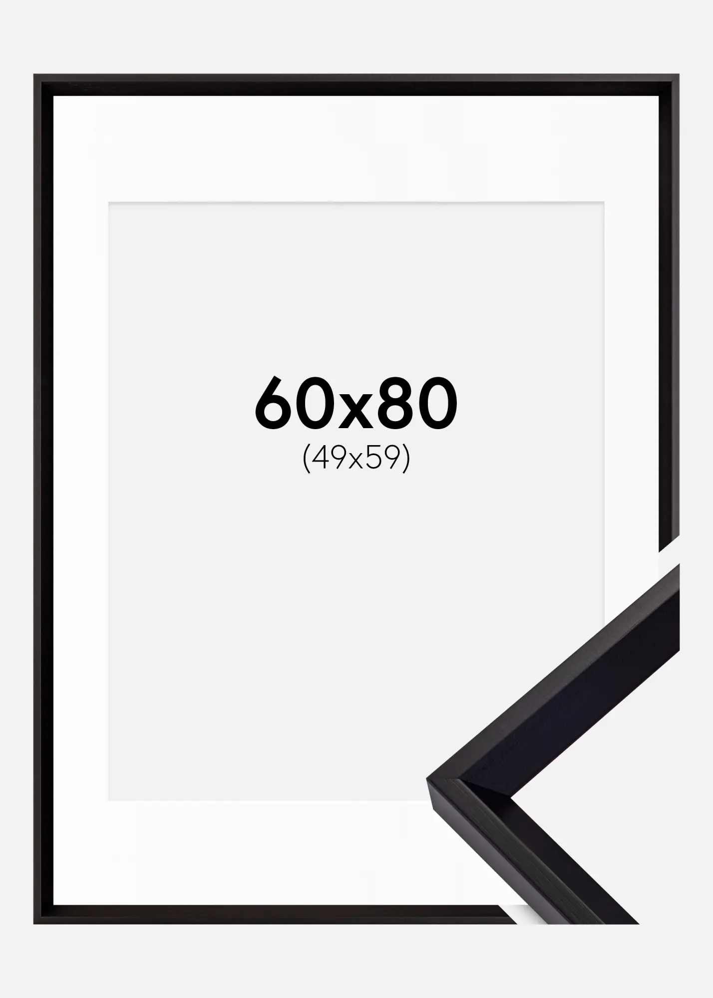 Forfait comprenant le cadre photo et le passe-partout blanc assorti. Sur la photo du produit, vous pouvez voir les dimensions du cadre (indiquées en gras) et les dimensions intérieures du passe-partout (indiquées entre parenthèses). Notez que les dimensions intérieures du passe-partout se doivent d'être toujours 1 cm inférieures par rapport à la taille de l'image que vous souhaitez encadrer.