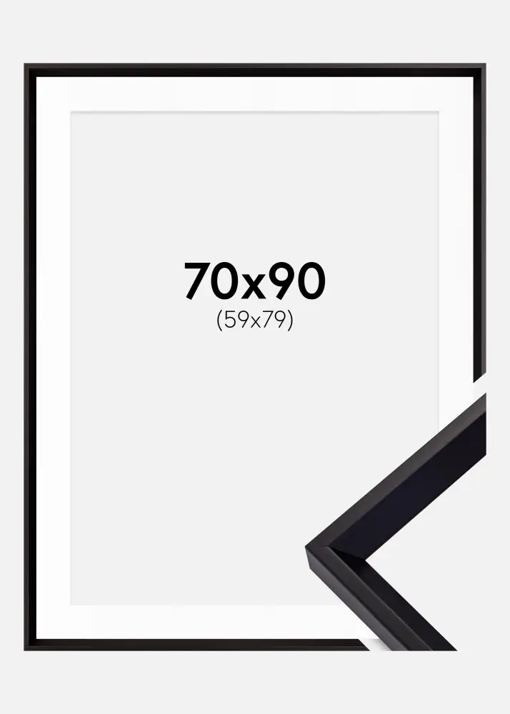 Forfait comprenant le cadre photo et le passe-partout blanc assorti. Sur la photo du produit, vous pouvez voir les dimensions du cadre (indiquées en gras) et les dimensions intérieures du passe-partout (indiquées entre parenthèses). Notez que les dimensions intérieures du passe-partout se doivent d'être toujours 1 cm inférieures par rapport à la taille de l'image que vous souhaitez encadrer.