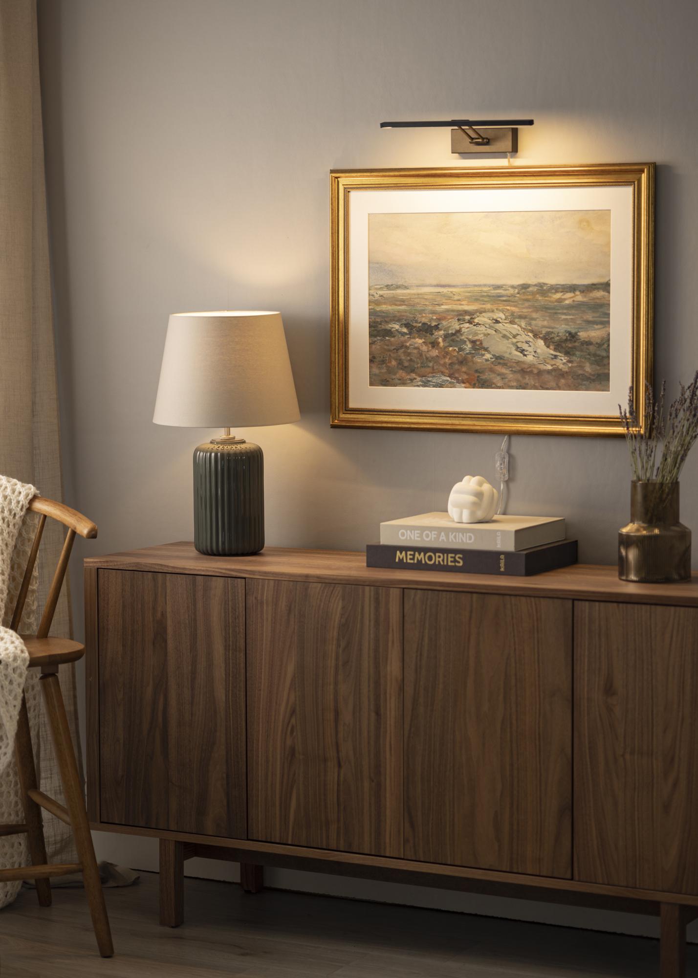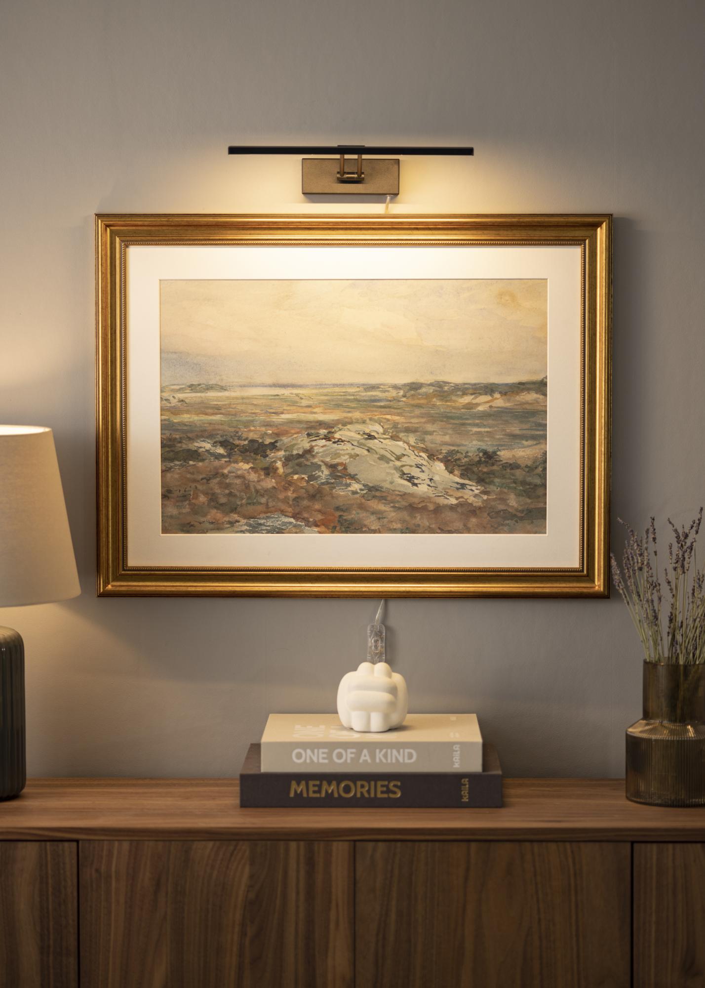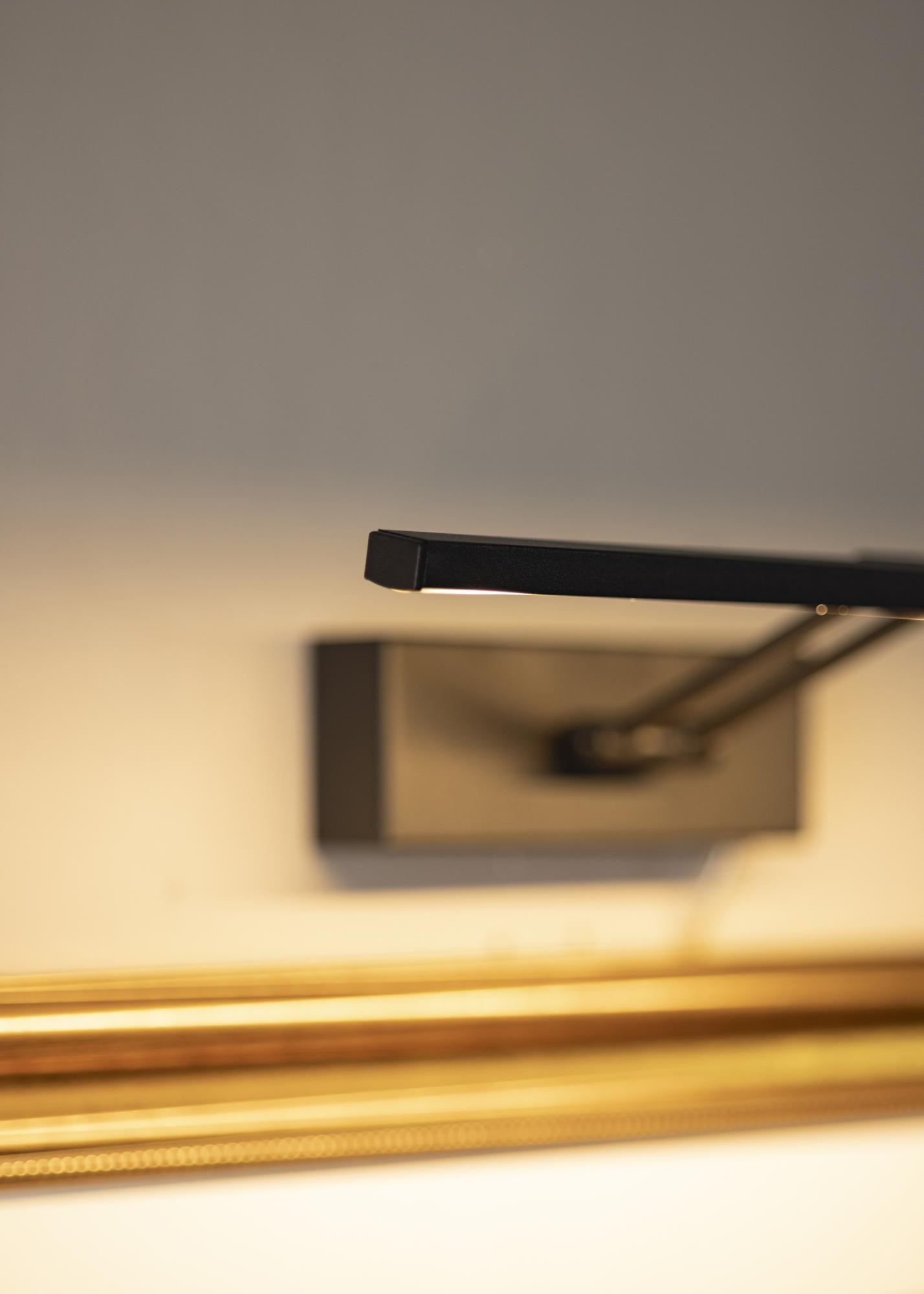 Éclairage de tableau au design nordique moderne qui convient aux tableaux d'une largeur de 60 à 100 cm. L'armature a une hauteur de 5 cm et une longueur de 37 cm avec une distance au mur de 20 cm. Avec son éclairage LED puissant de 720 lumens, vous obtenez un éclairage agréable même sur de plus grands tableaux.