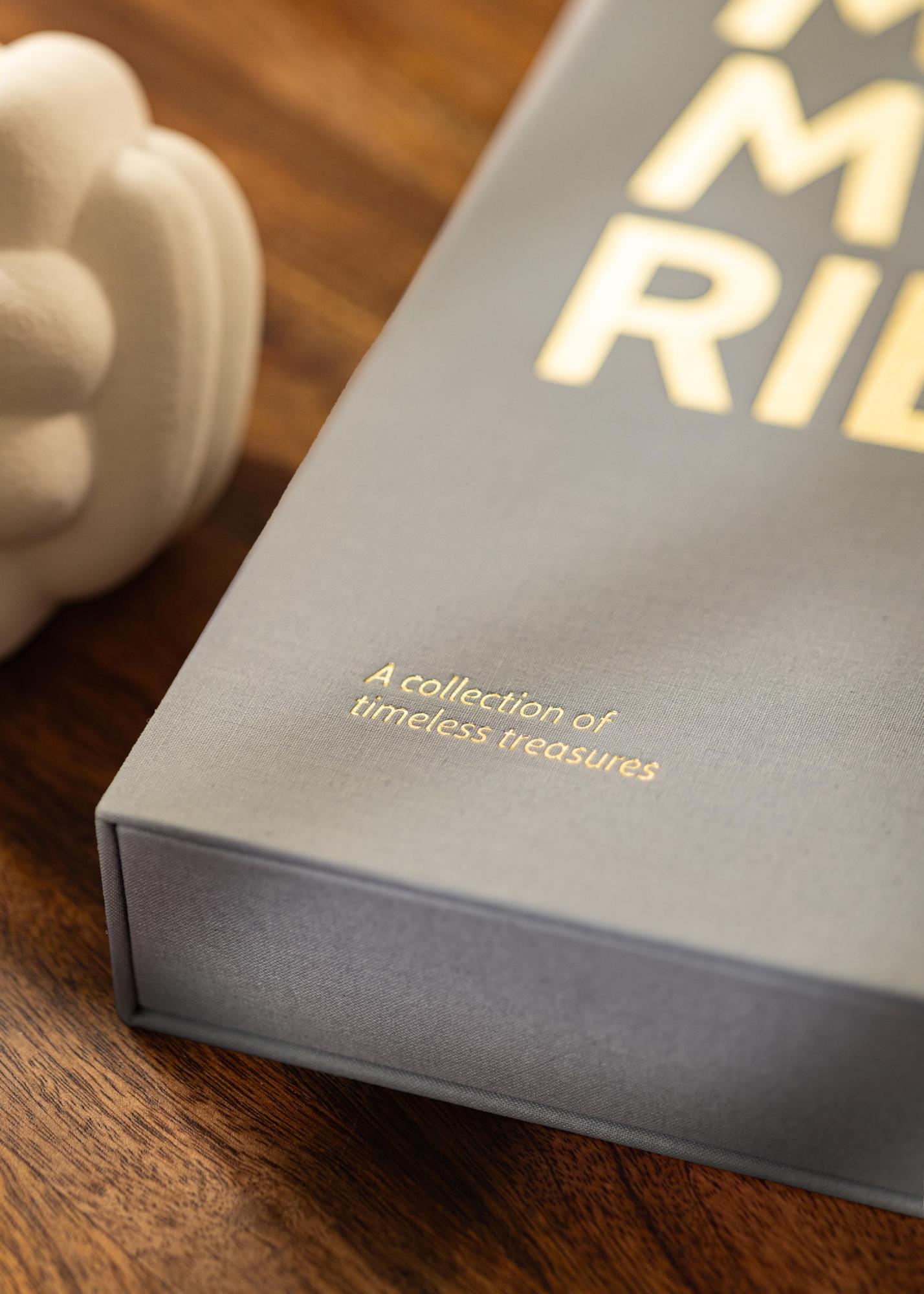 L'album est élégamment habillé de textile gris et sur le devant et le dos de l'album se trouve un imprimé doré avec le texte "MEMORIES". Le titre de l'album est aussi complété par le sous-titre "A collection of timeless treasures", imprimé dans le coin inférieur gauche.