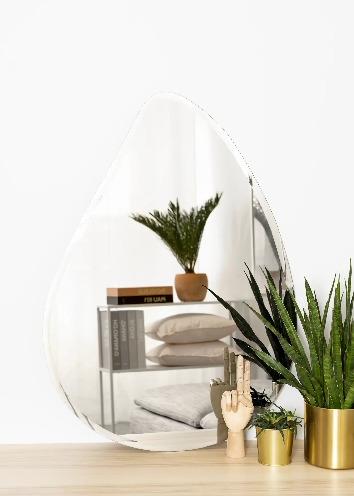 Ce miroir en forme de goutte est disponible en plusieurs tailles, dont cette variante de taille 65x90 cm. Placez le miroir sur le mur dans le salon, le vestibule, la chambre à coucher ou dans n'importe quelle pièce où vous souhaitez ajouter de la fonctionnalité et un design nordique élégant.