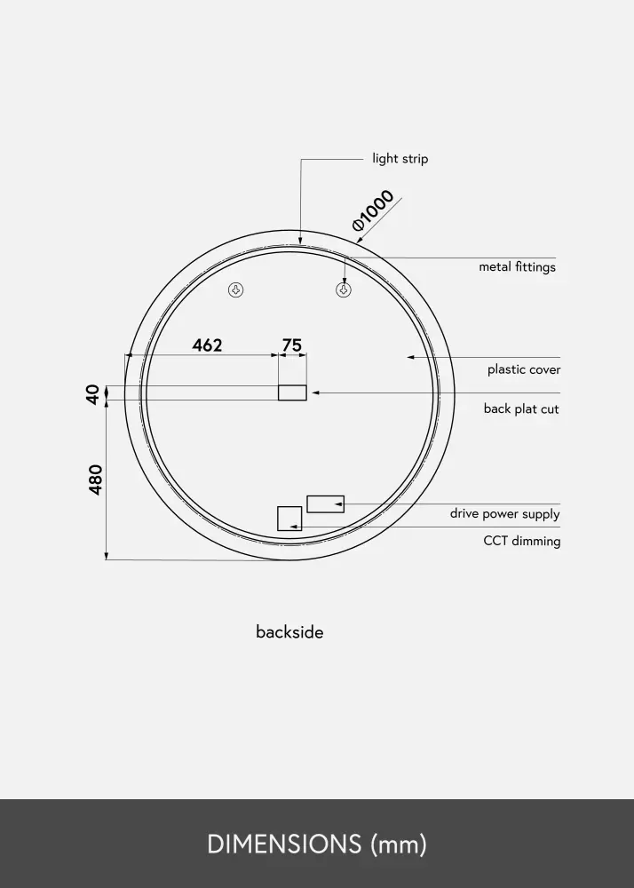 Le miroir est adapté pour les salles de bain mais grâce à son design intemporel et élégant, il a également fière allure sur les autres murs de la maison. Le miroir mesure 100 cm de diamètre, il ne fait que 3 cm d'épaisseur et est doté de supports muraux. Le miroir est destiné à une installation fixe et se connecte à un interrupteur. Afin que le miroir puisse fonctionner correctement, celui-ci doit être connecté à un interrupteur normal et non à un gradateur de lumière.