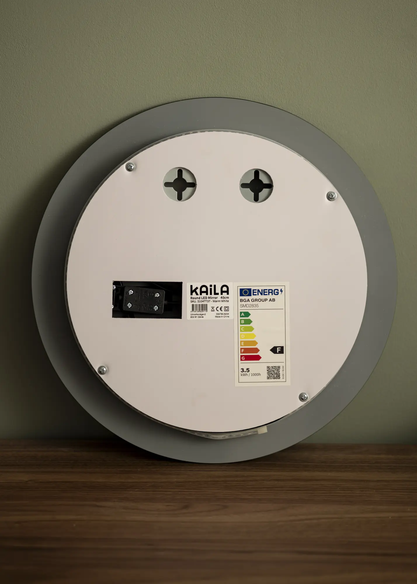 Le miroir est adapté pour les salles de bain mais grâce à son design intemporel et élégant, il a également fière allure sur les autres murs de la maison. Le miroir mesure 40 cm de diamètre, il ne fait que 3 cm d'épaisseur et est doté de supports muraux. Le miroir est destiné à une installation fixe et se connecte à un interrupteur. Afin que le miroir puisse fonctionner correctement, celui-ci doit être connecté à un interrupteur normal et non à un gradateur de lumière.