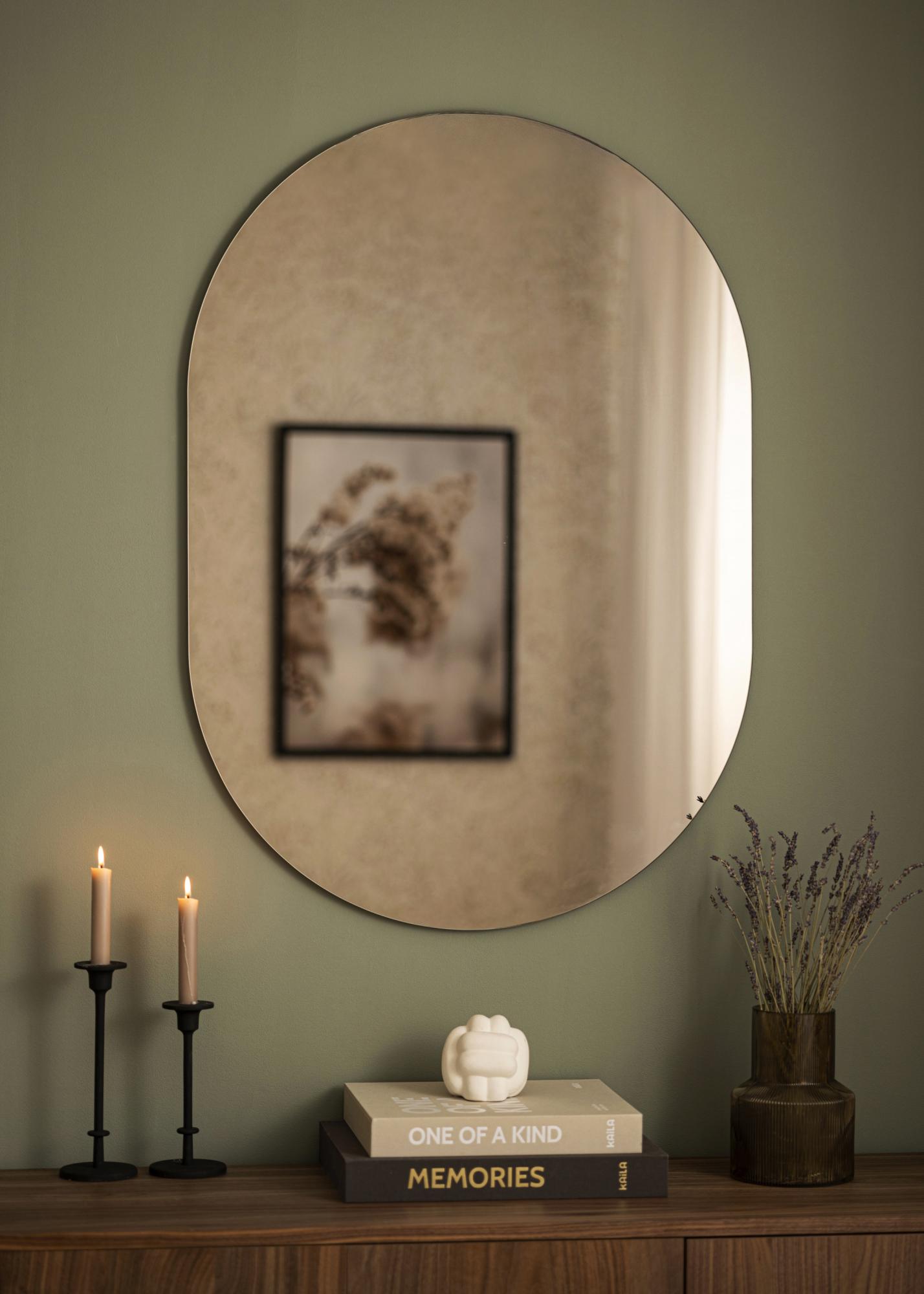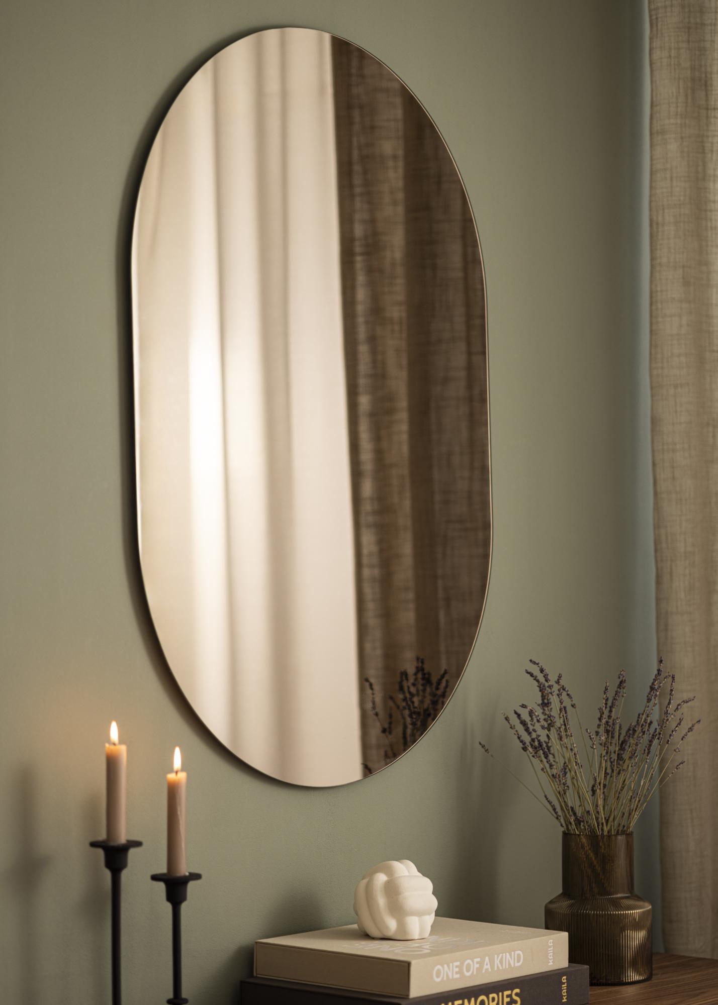 Un miroir ovale donne une impression douce et élégante dans votre demeure. Ce miroir ovale a également un verre miroir teinté dans une nuance raffinée de bronze foncé. Ce détail efficace et tendance est combiné à un design fin, car le miroir est très mince et est dépourvu de cadre. Le résultat est un détail de décoration accrocheur, moderne et élégant à placer dans n'importe quelle pièce où vous souhaitez ajouter de la fonctionnalité et un design nordique des plus tendance !