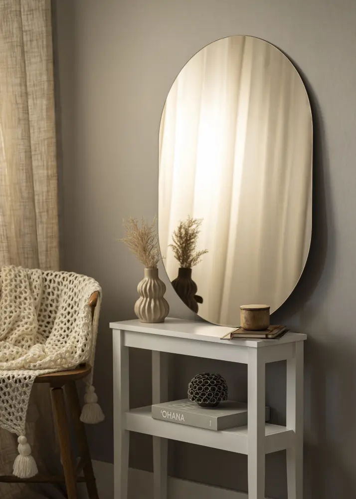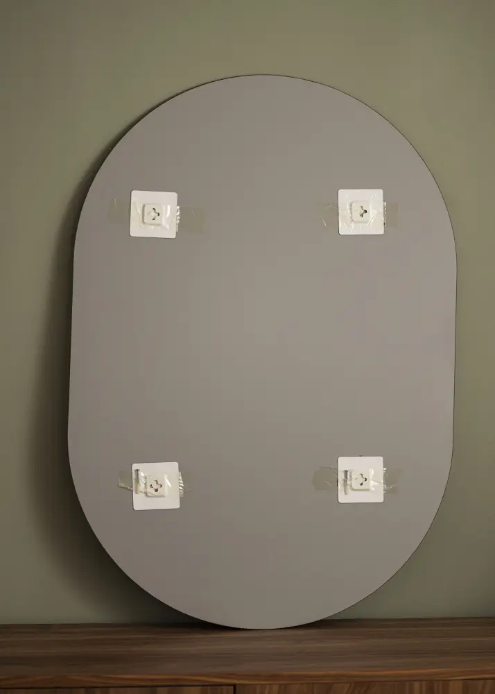 Ce miroir ovale est disponible en plusieurs tailles, et cette variante particulière a une taille de 70x100 cm.