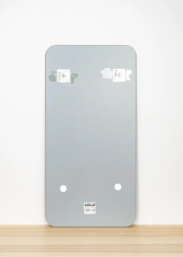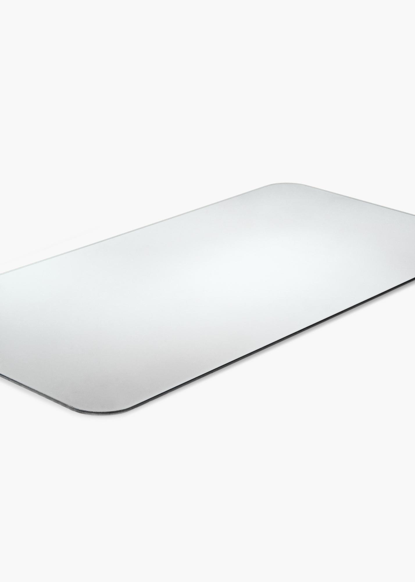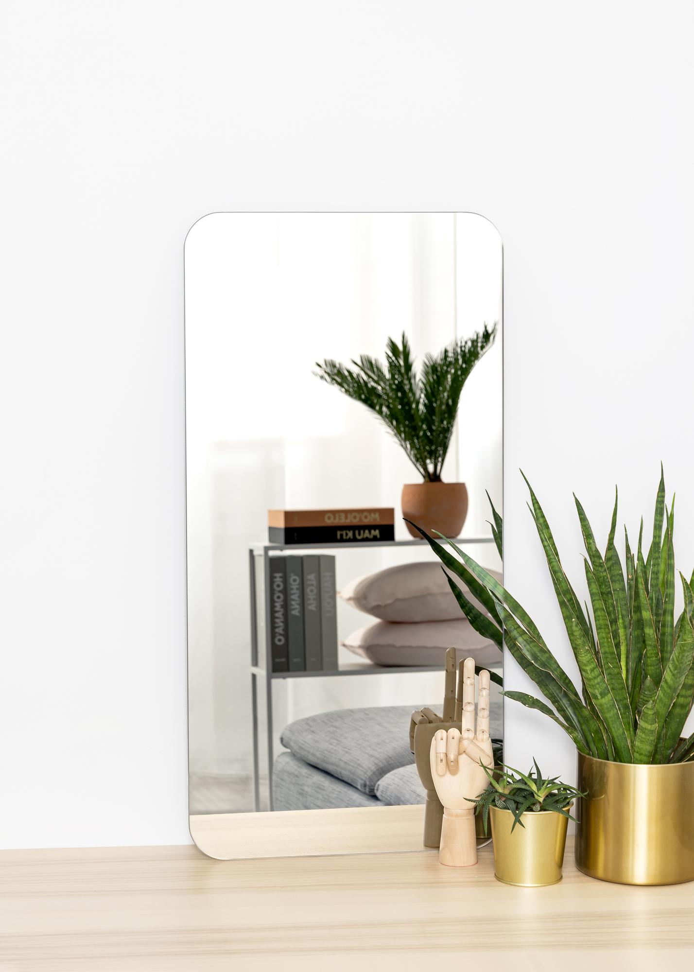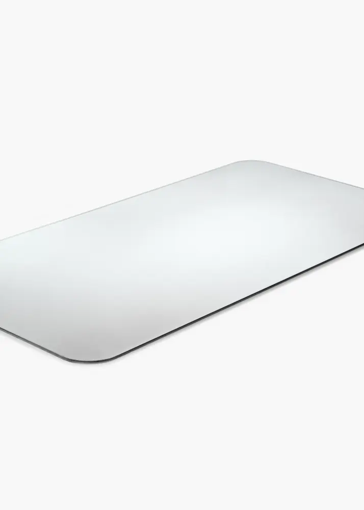 Il s'agit d'un miroir rectangulaire avec un détail qui fait la différence : des coins arrondis qui ajoutent douceur et élégance. Le miroir est également très mince et n'a pas de cadre, ce qui lui donne une sensation minimaliste.
