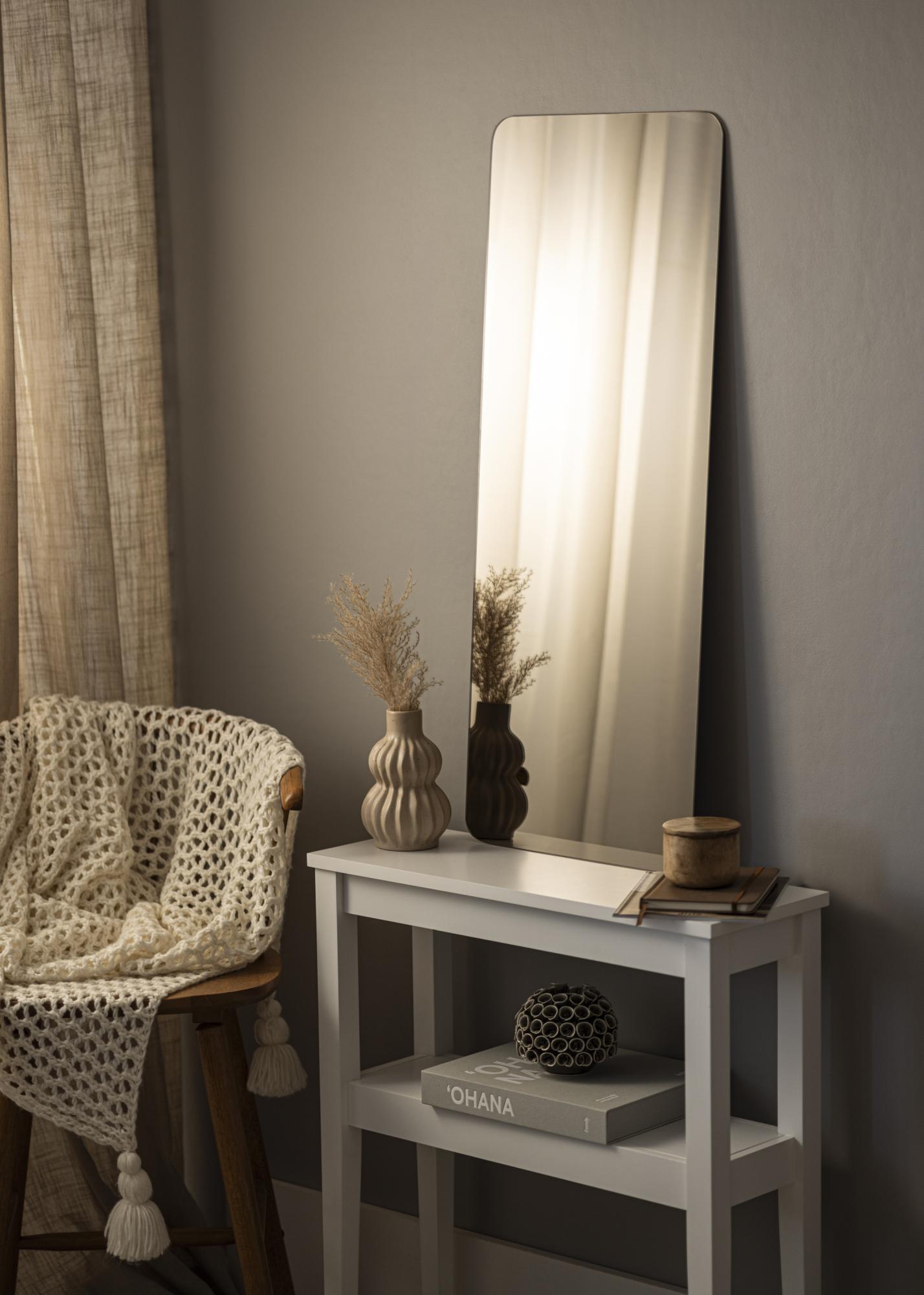 Ce miroir rectangulaire comporte des coins arrondis décoratifs pour une impression de douceur et d'élégance. Le verre miroir est teinté dans une élégante nuance de bronze foncé, ce qui fait de ce miroir un détail de décoration tendance et à l'effet assuré dans votre maison. Le miroir est également très mince et n'a pas de cadre, ce qui contribue en outre à sa sensation d'élégance et de finesse.