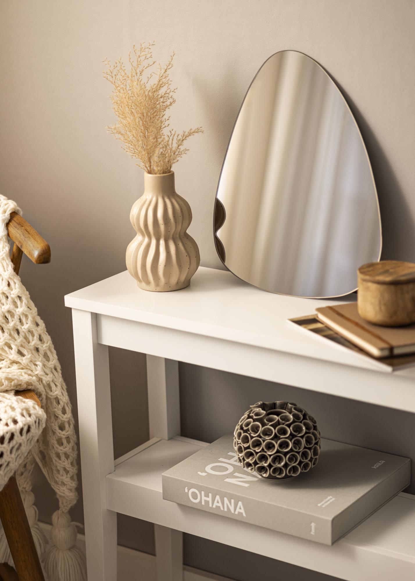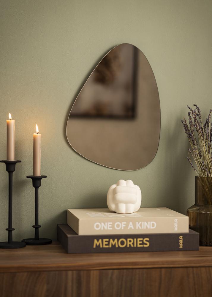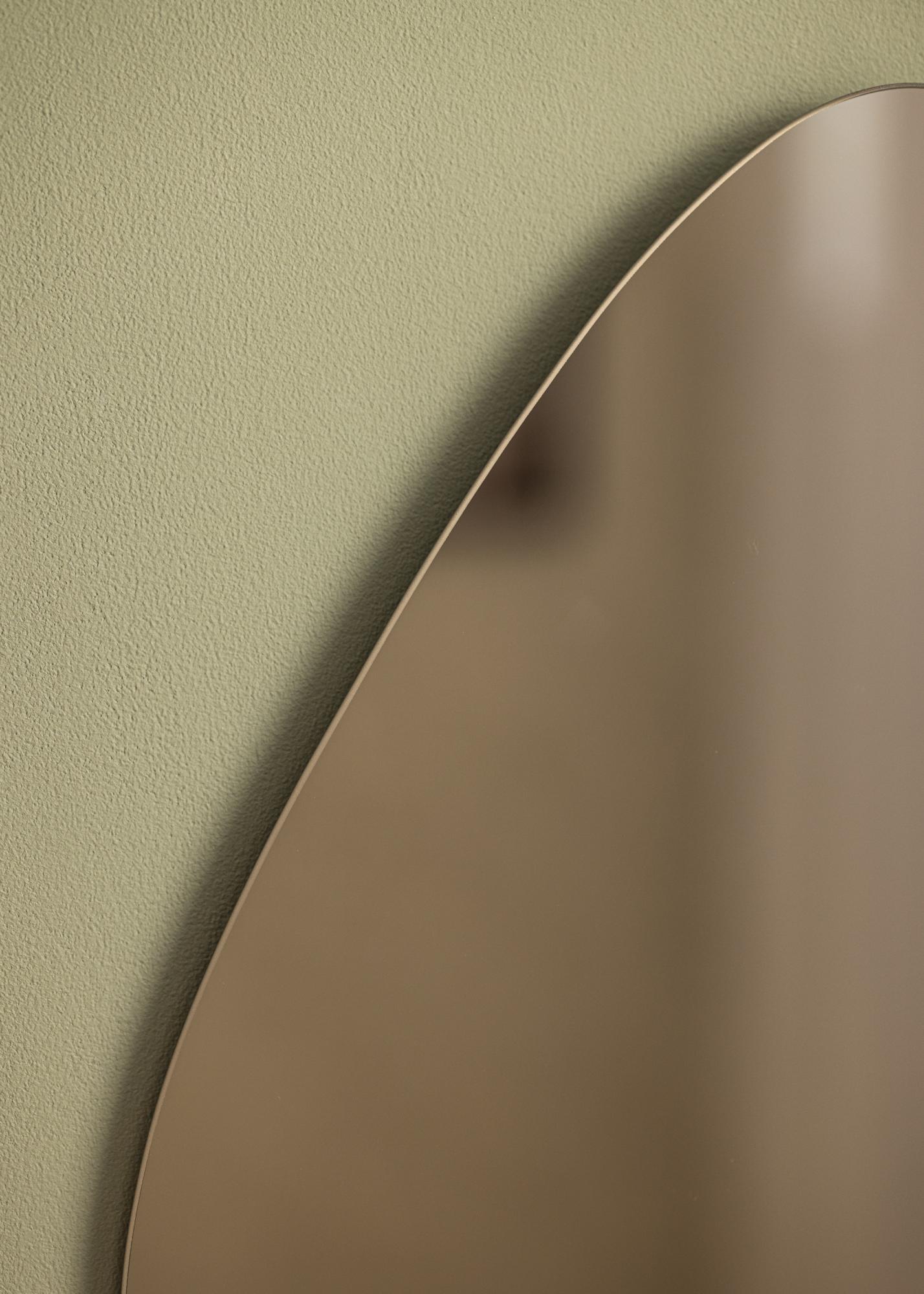 Ce miroir asymétrique sera un élément décoratif vraiment beau et tendance dans votre maison ! En plus du design intéressant en forme d'œuf, ce miroir dispose également d'un magnifique verre miroir teinté de bronze qui renforce l'apparence moderne et s'harmonise à merveille avec de nombreux schémas de couleurs différents. La forme douce, combinée au fait que le miroir est très fin et sans cadre, donne au miroir une sensation rare d'élégance et de finesse. Parfait comme décoration murale fonctionnelle et tendance dans le salon, le vestibule ou la chambre.