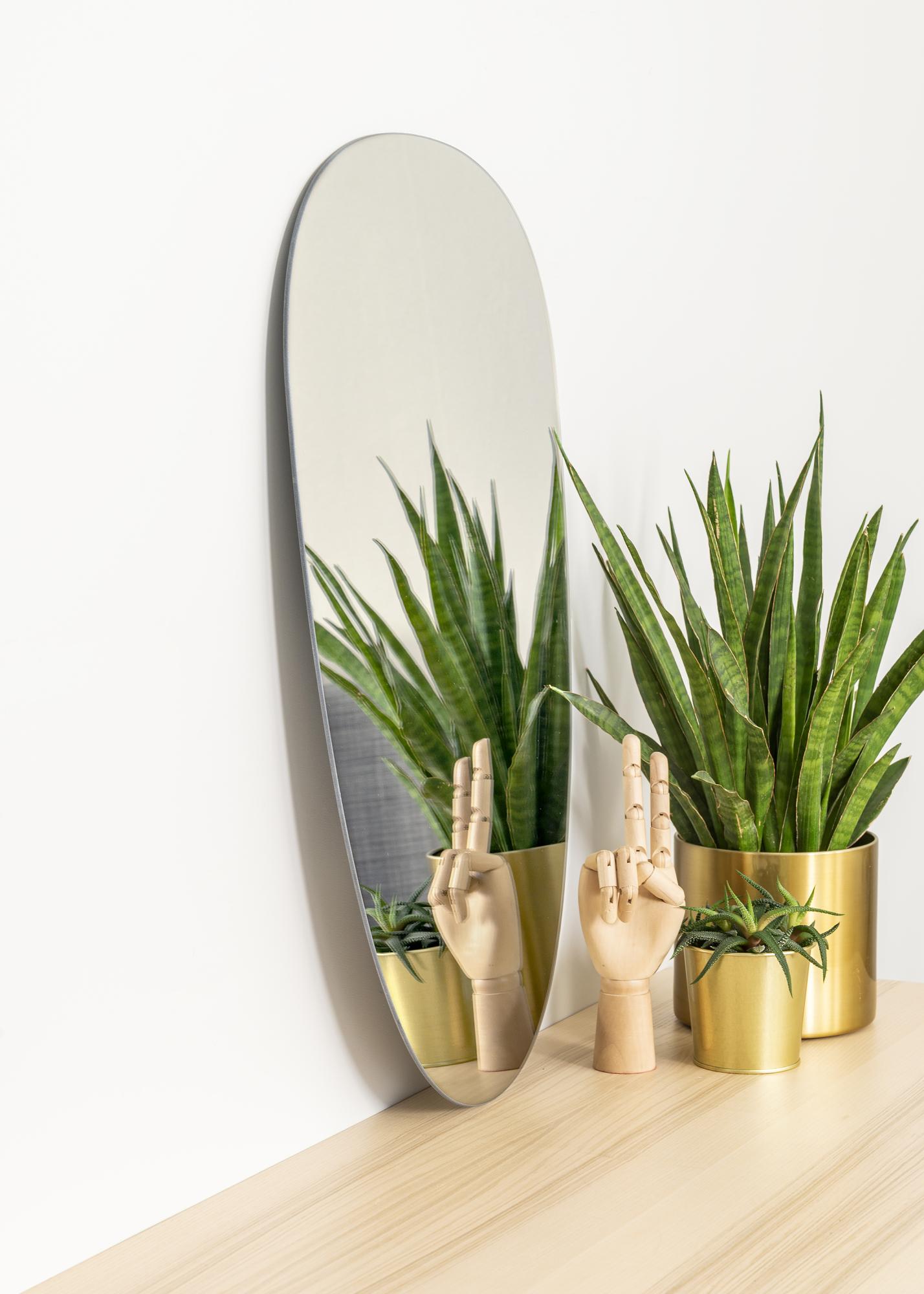 Un miroir élégant et intéressant comme celui-ci sera un ajout des plus modernes dans votre décoration intérieure ! Le miroir a une forme douce et asymétrique qui peut presque être décrite comme un ovale irrégulier. Le miroir est également très mince et n'a pas de cadre, ce qui amplifie l'aspect élégant du miroir.