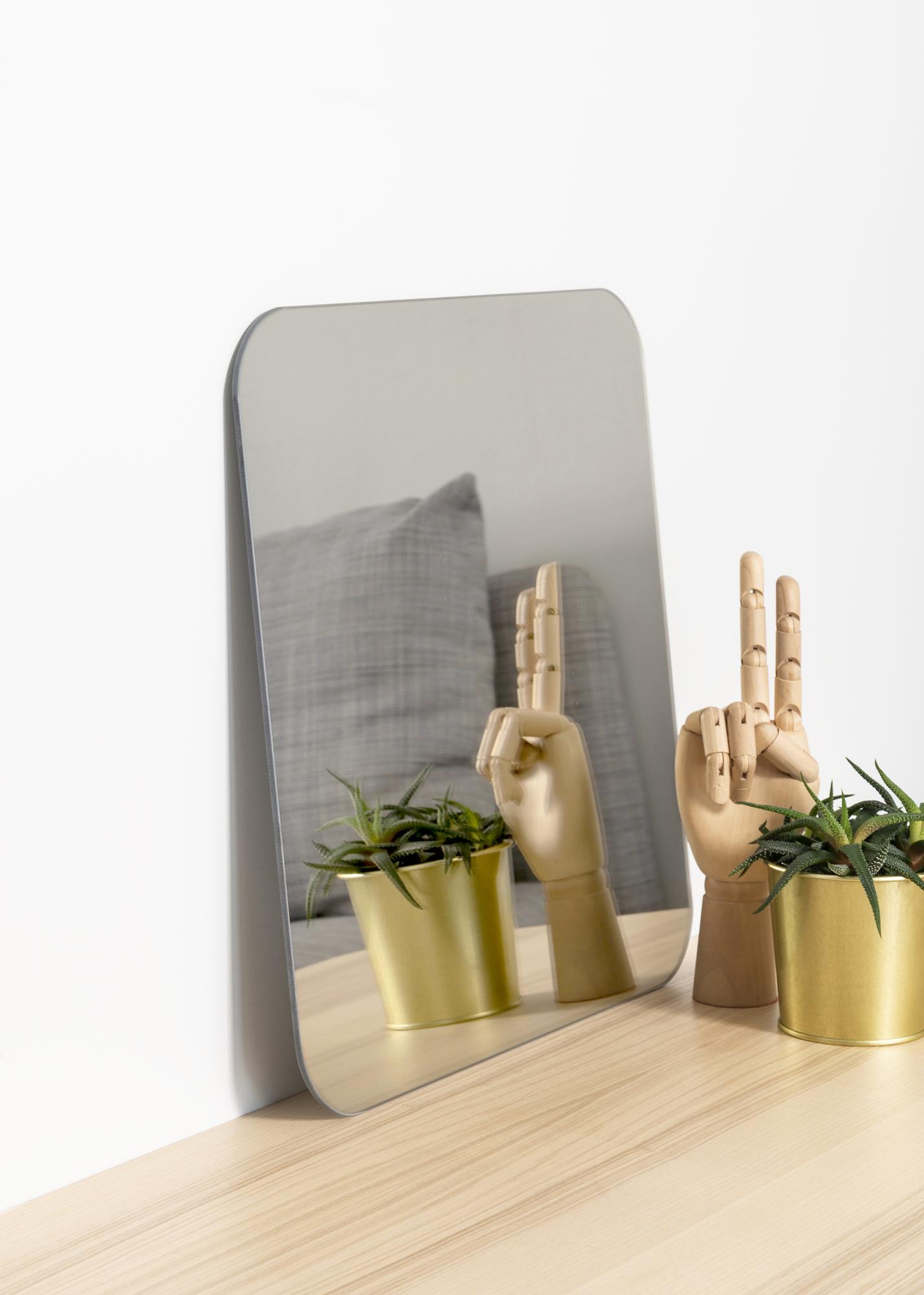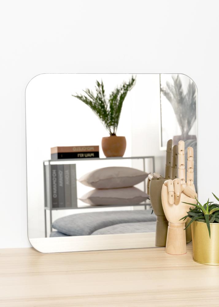 Ce miroir carré a des coins arrondis, ce qui adoucit l'impression et lui donne une sensation d'élégance. De plus, le miroir ne mesure que 4 mm d'épaisseur et est dépourvu de cadre, ce qui lui donne un aspect minimaliste et le rend facile à intégrer dans n'importe quelle maison.