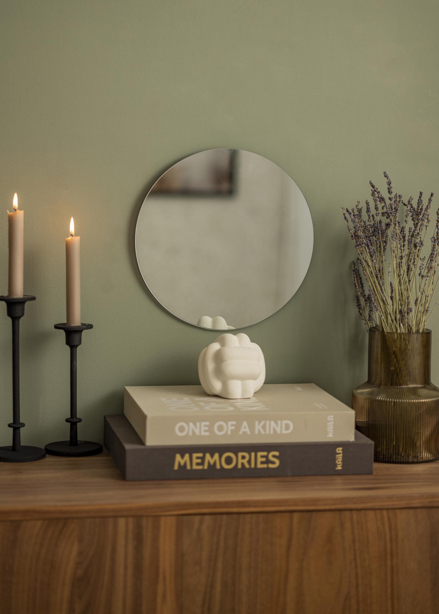 Miroir rond de 30 cm qui fait partie d'une série de miroirs ronds de KAILA. Disponible en 13 tailles pour que vous puissiez trouver la taille qui correspond parfaitement à votre pièce. Le miroir est extrêmement fin et élégant et s'adapte à tous les types de pièces et de styles de décoration.