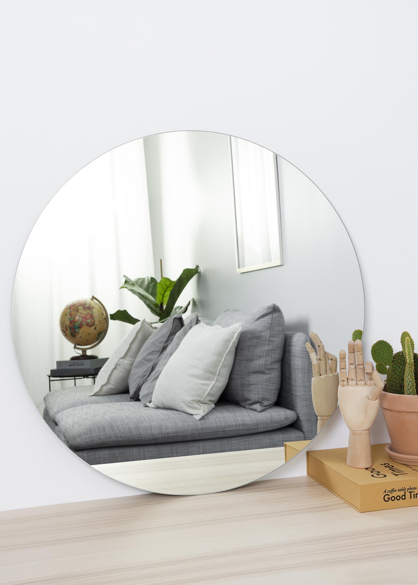 Miroir rond de 70 cm qui fait partie d'une série de miroirs ronds de KAILA. Disponible en 13 tailles pour que vous puissiez trouver la taille qui correspond parfaitement à votre pièce. Le miroir est extrêmement fin et élégant et s'adapte à tous les types de pièces et de styles de décoration.