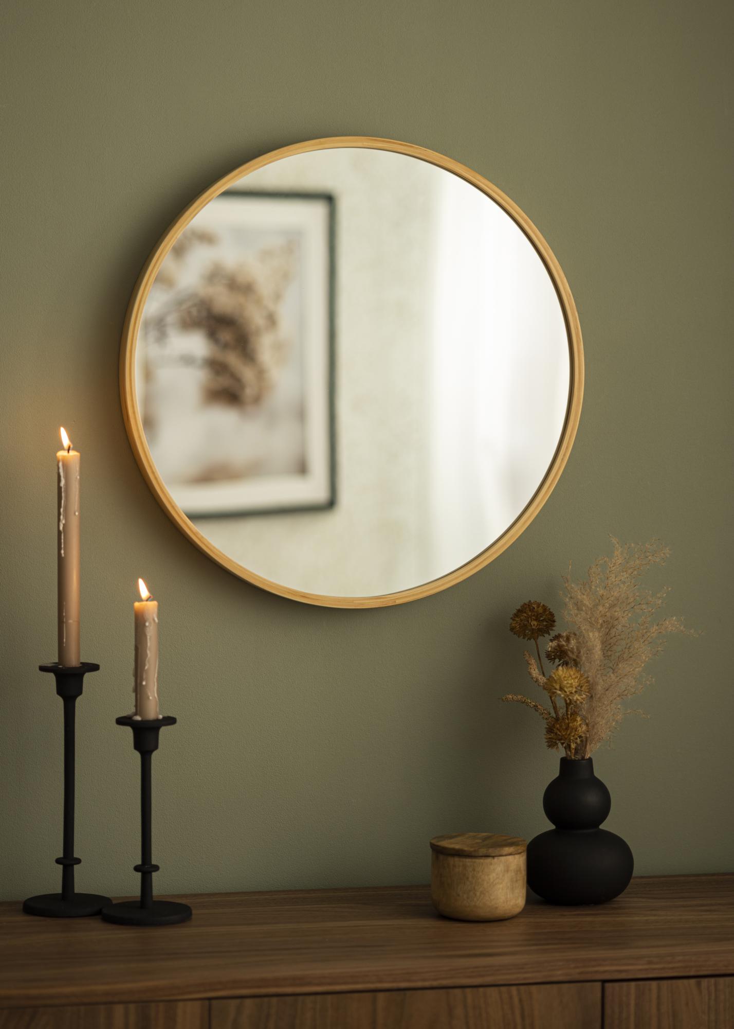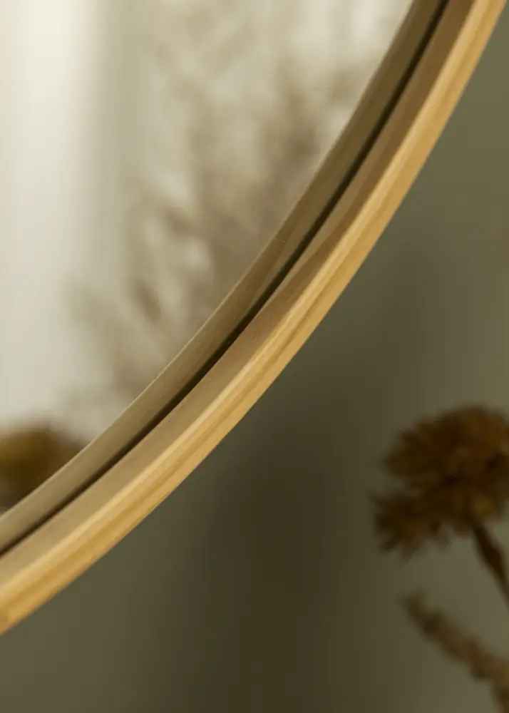 Voici un miroir rond avec un bord en bois clair. Ce miroir mural est particulièrement adapté pour ceux qui sont attirés par un style de décoration d'intérieur qui se veut proche de la nature et moderne. Les détails d'intérieur au design naturel comme ce miroir contribue à apporter une atmosphère chaleureuse et agréable dans votre lieu de vie. Les supports muraux sont inclus. Le miroir mesure 50 cm de diamètre.