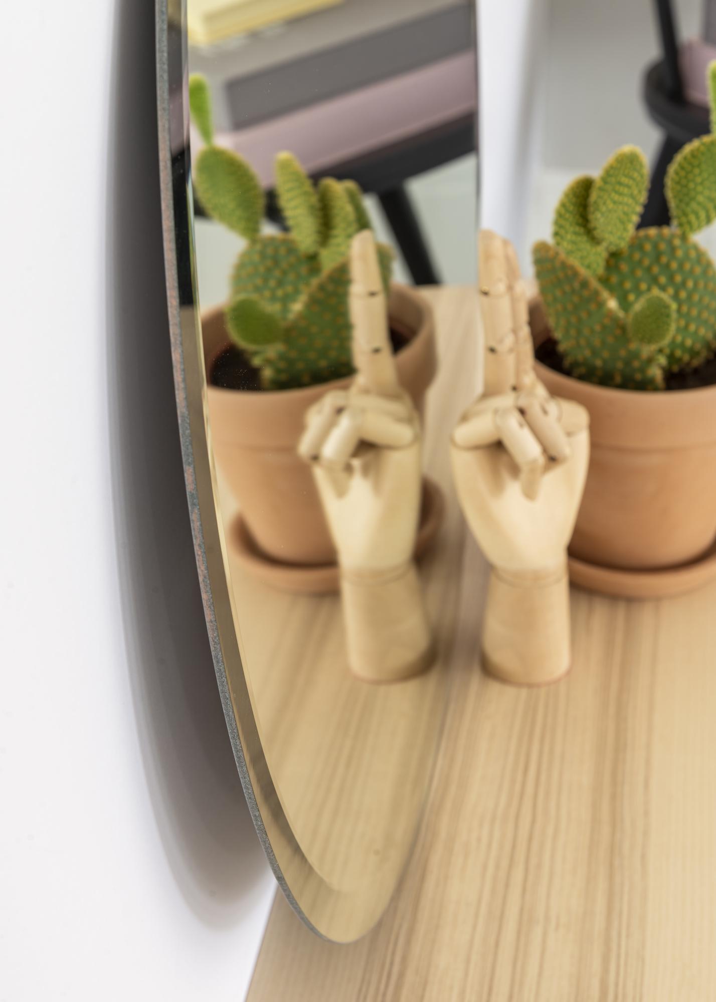 Ce miroir rond a un bord biseauté luxueux, ce qui lui donne une apparence exclusive. Le design moderne mais intemporel permet au miroir de s'adapter à toutes les maisons et à tous les styles de design d'intérieur. La forme ronde du miroir signifie également qu'il crée une atmosphère douce et accueillante dans la pièce dans laquelle il se trouve.
