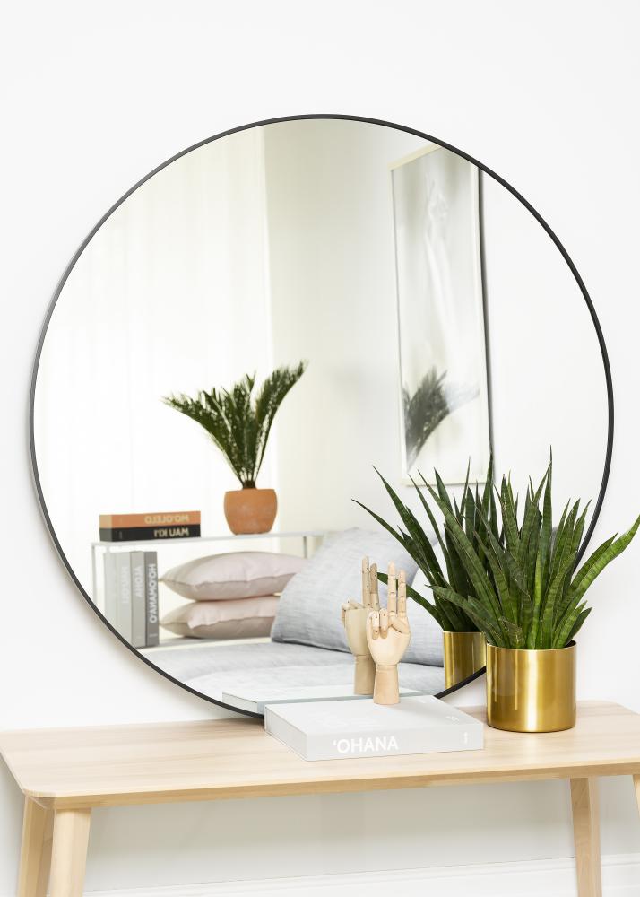 KAILA Round Mirror Edge Black est un miroir rond avec un cadre métallique fin et élégant en noir mat, ce qui lui donne un aspect industriel et tendance. Le cadre a, selon la taille, une profondeur comprise entre 30 et 40 mm, ce qui signifie que le verre du miroir sort un peu du mur et crée un effet 3D intéressant. La profondeur du cadre donne également au miroir une sensation de solidité tout en conservant son aspect minimaliste. Un miroir rond parfait à placer dans n'importe quelle pièce où vous souhaitez ajouter de la fonctionnalité et un design nordique élégant !